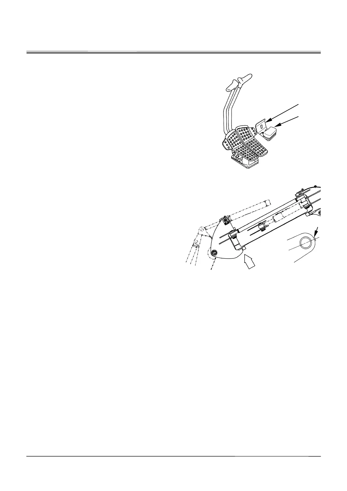 Pedal (2) is located at the operator’s right foot.