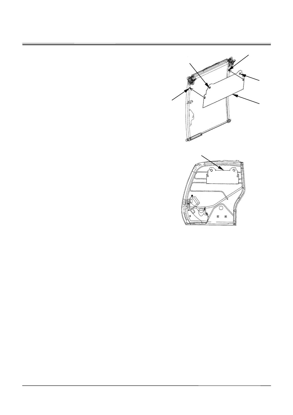 Attach sun visor (1) on hooks (2) to secure it to the front