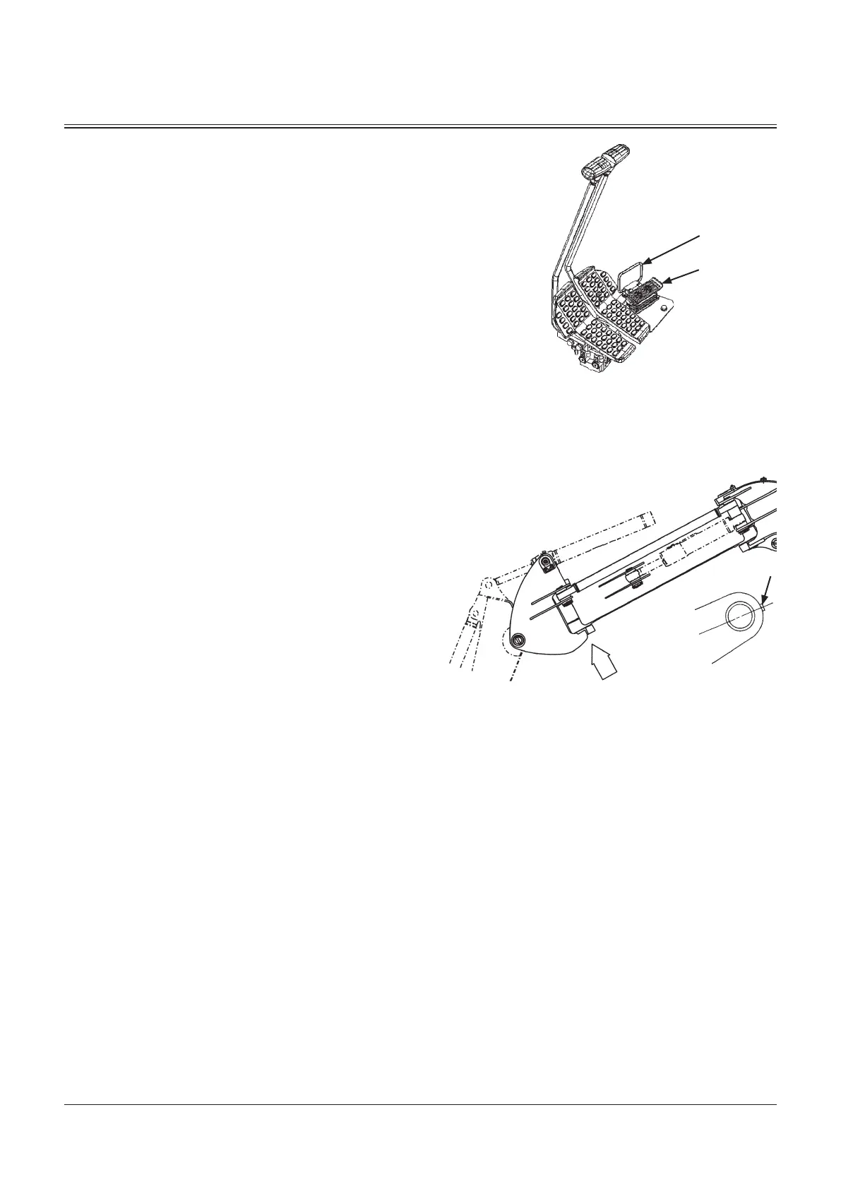 4. Turn cover (1) backward to lock pedal (2) when the arm