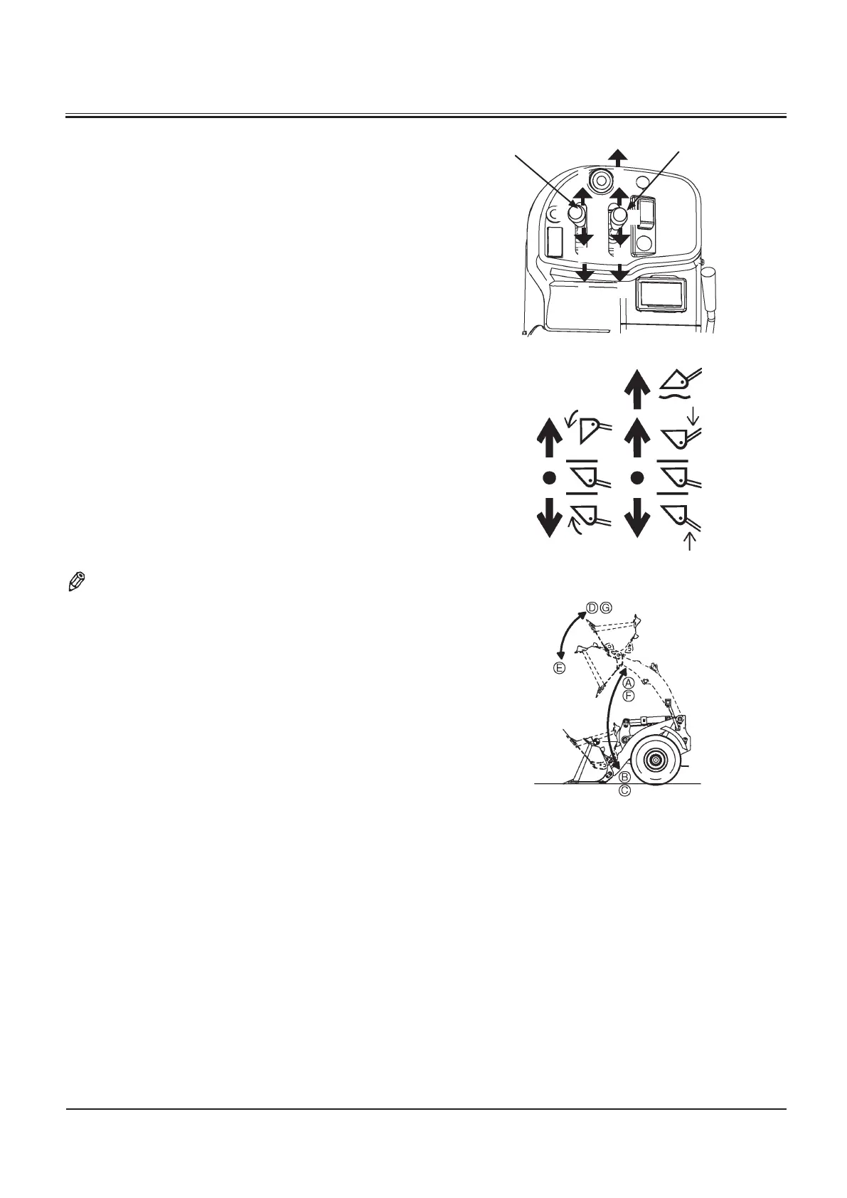 (E) Bucket Dump: The bucket is tilted forward to dump the