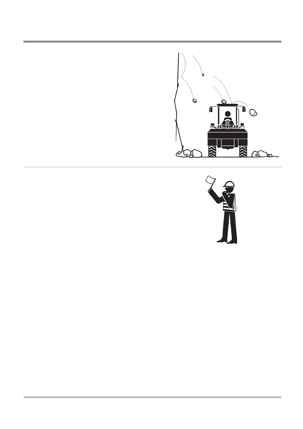 of falling stones or debris exist, equip a head guard, ROPS, or