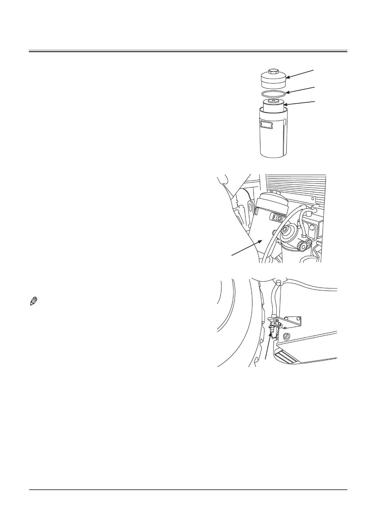 3. Remove oil filter cap (1) and cartridge type element (3)