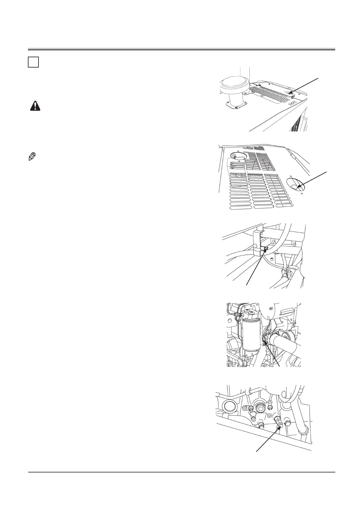 4. Remove radiator cap (1). Open radiator drain cock (2) and