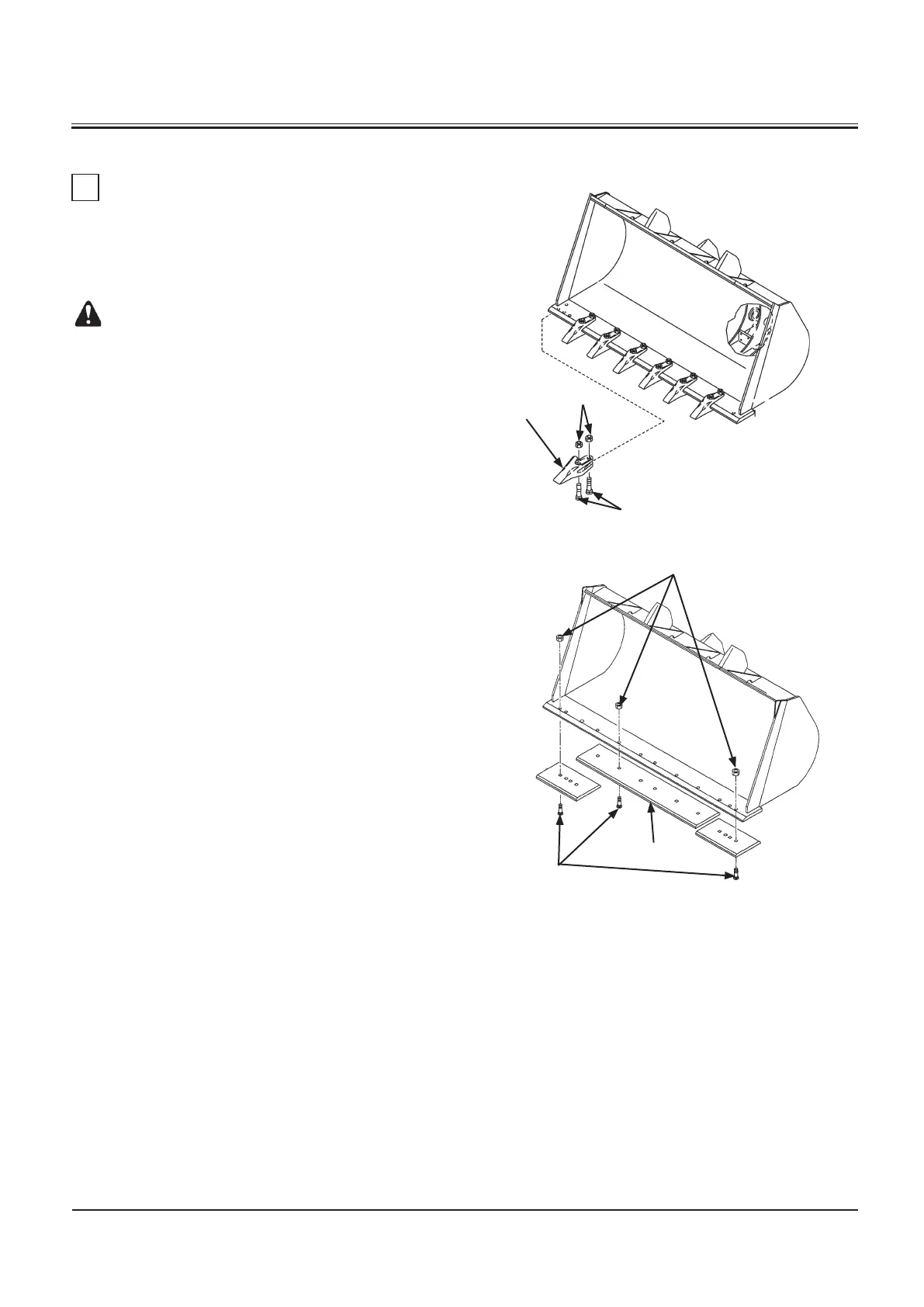 2. Loosen bolts (1) and nuts (2). Remove bucket teeth (3) or