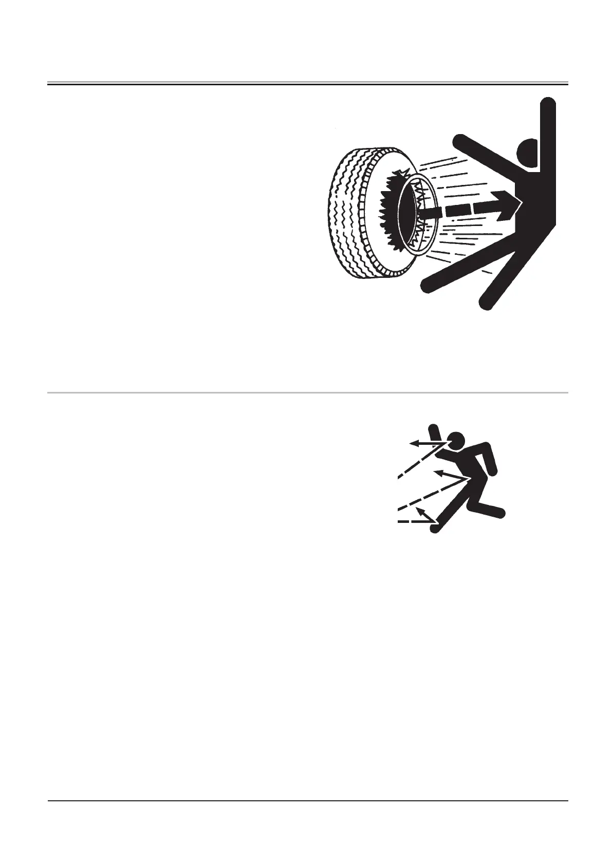 • Never cut or weld on an inflated tire or rim assembly. Heat