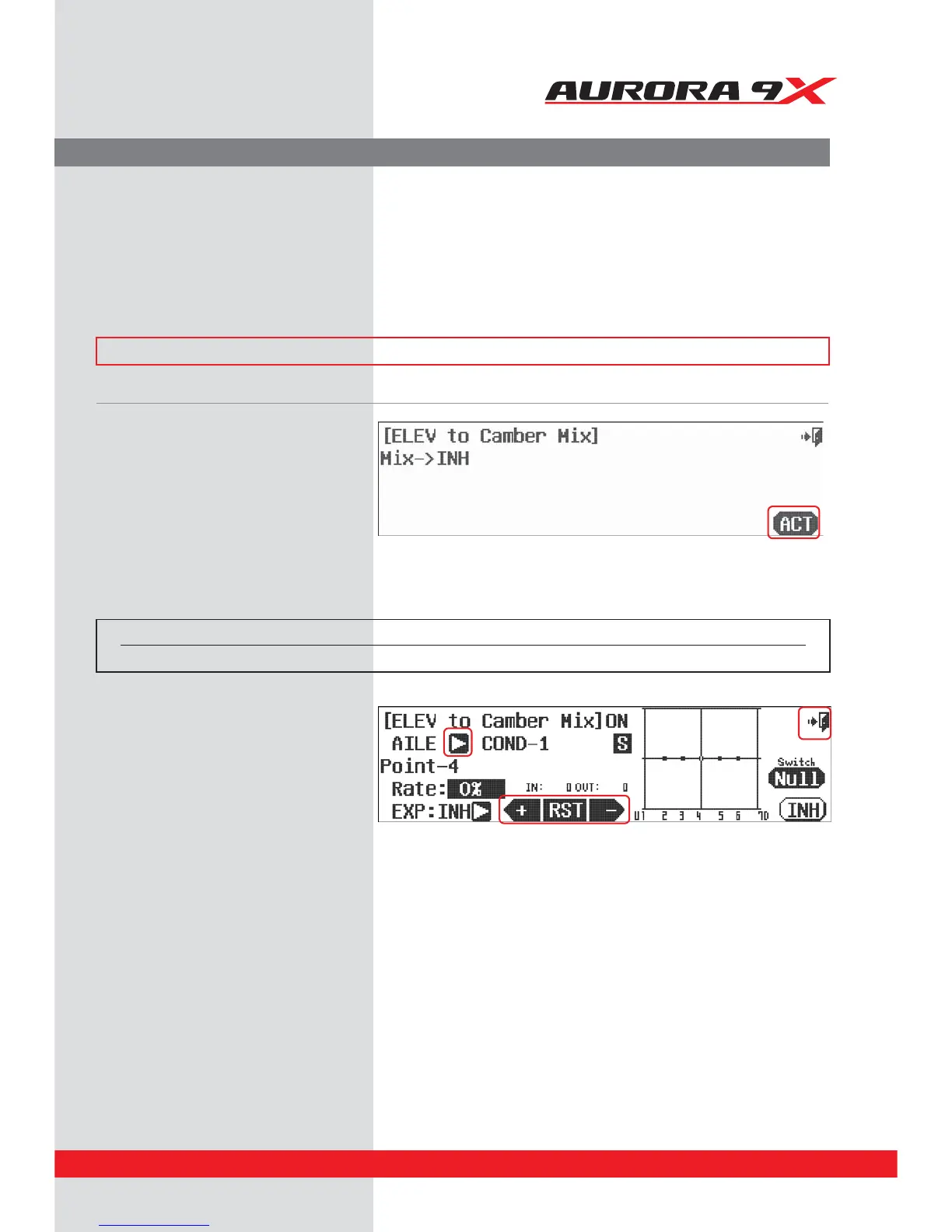 the dierent menu screens. In the case of the elevator to camber mix, the number of aps and ailerons will appear as a
