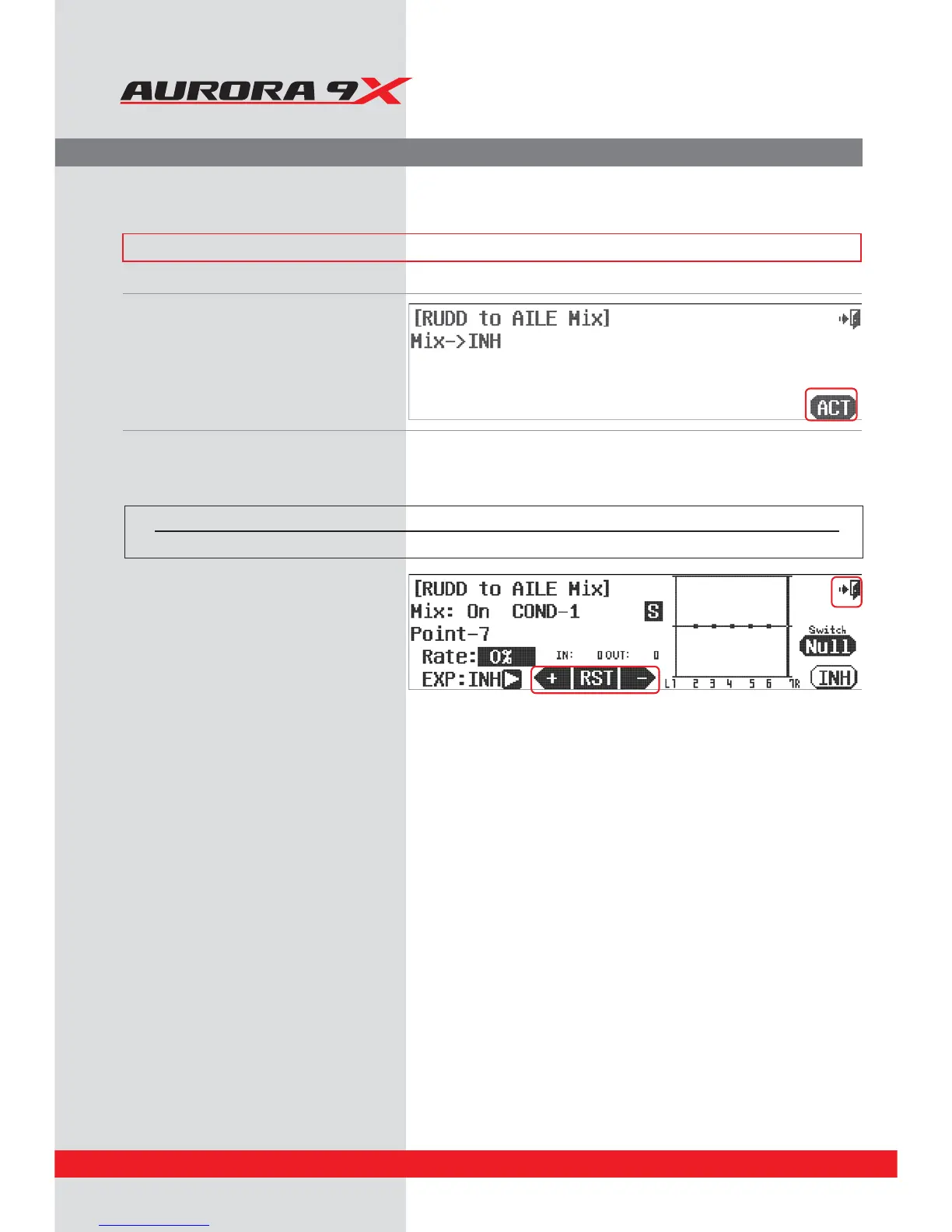 If you wish to mix aileron into a rudder input, follow the directions below.