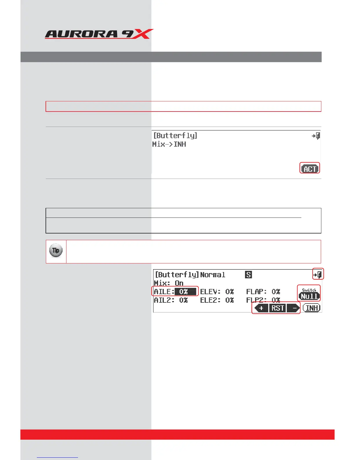 c. Select a 2 position switch and/or the throttle stick to activate the buttery mix. Choose a “cut” point if you wish,
