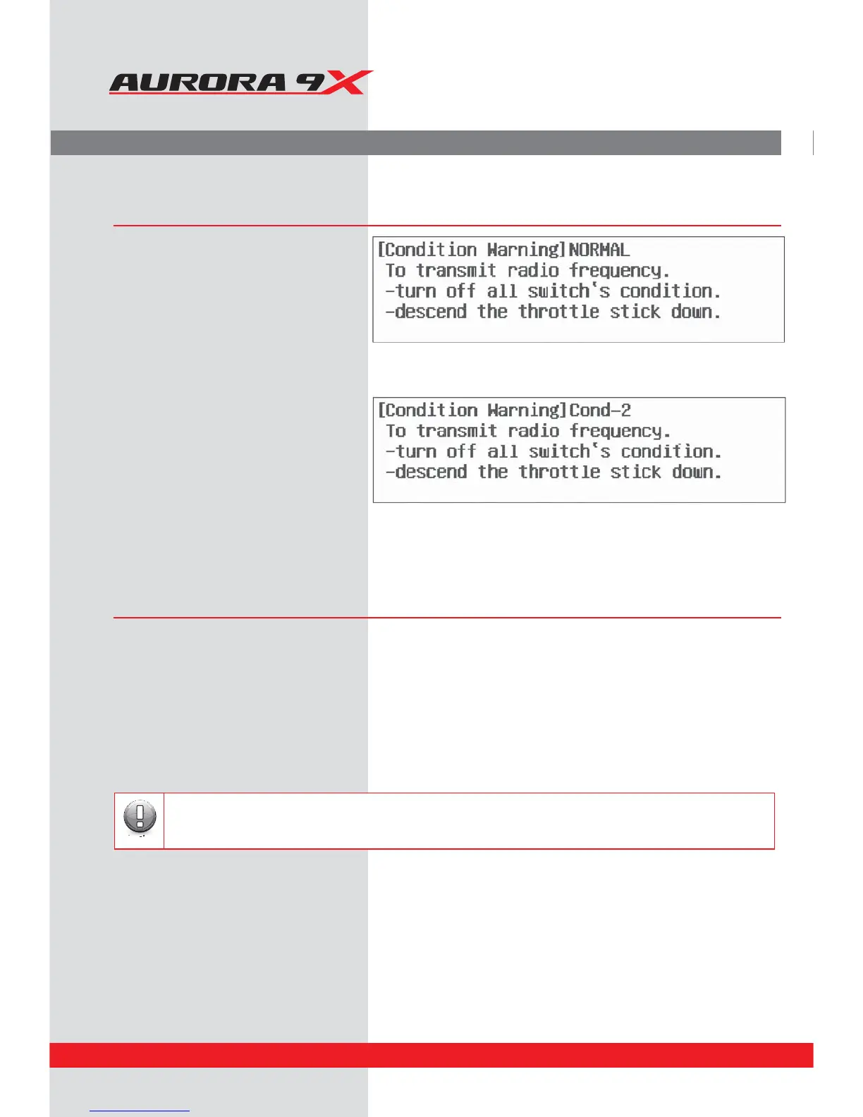 Aurora 9X Transmitter Warnings