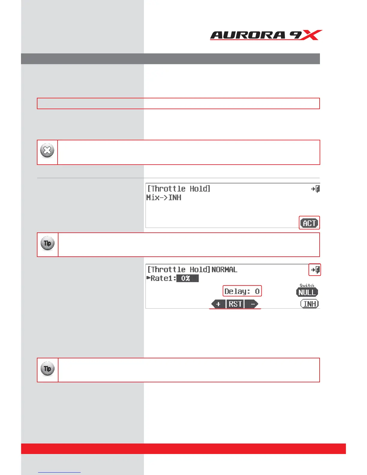 The throttle hold feature will not work unless a hold position has been assigned a switch using the ight condition/idle-up