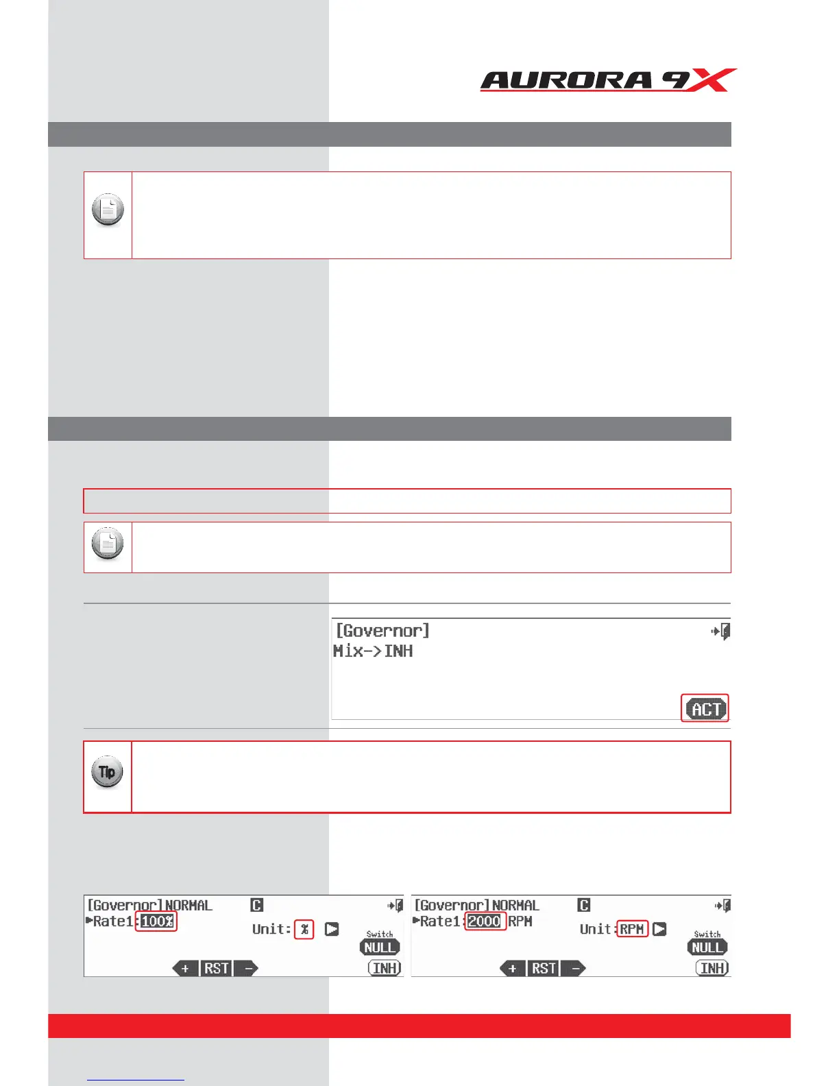 The Aurora 9X features up to three Governor and switch control rate values per model memory.
