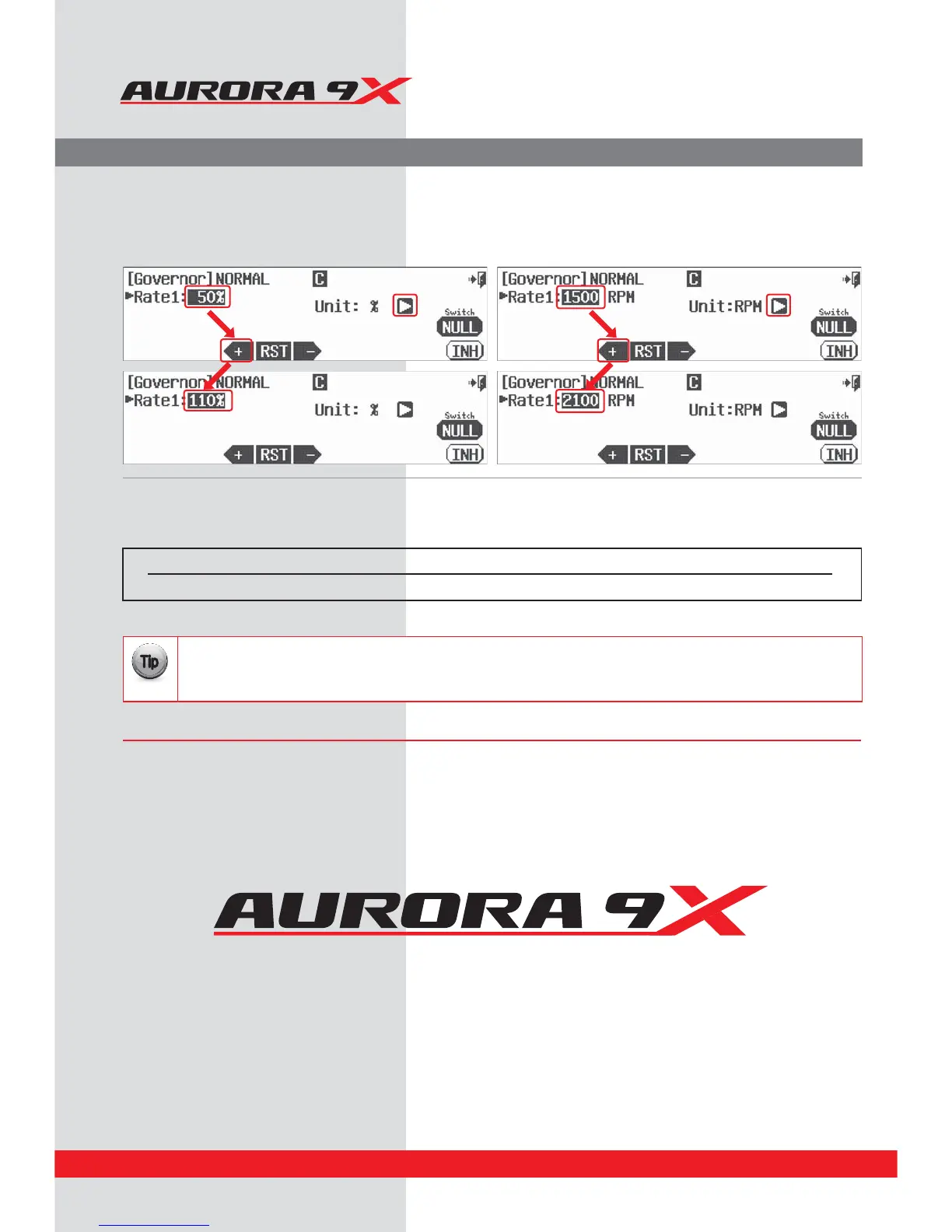 guidelines, apply an appropriate % value with the + RST – icons. Set a rate value for all your idle-up and hold switch positions.