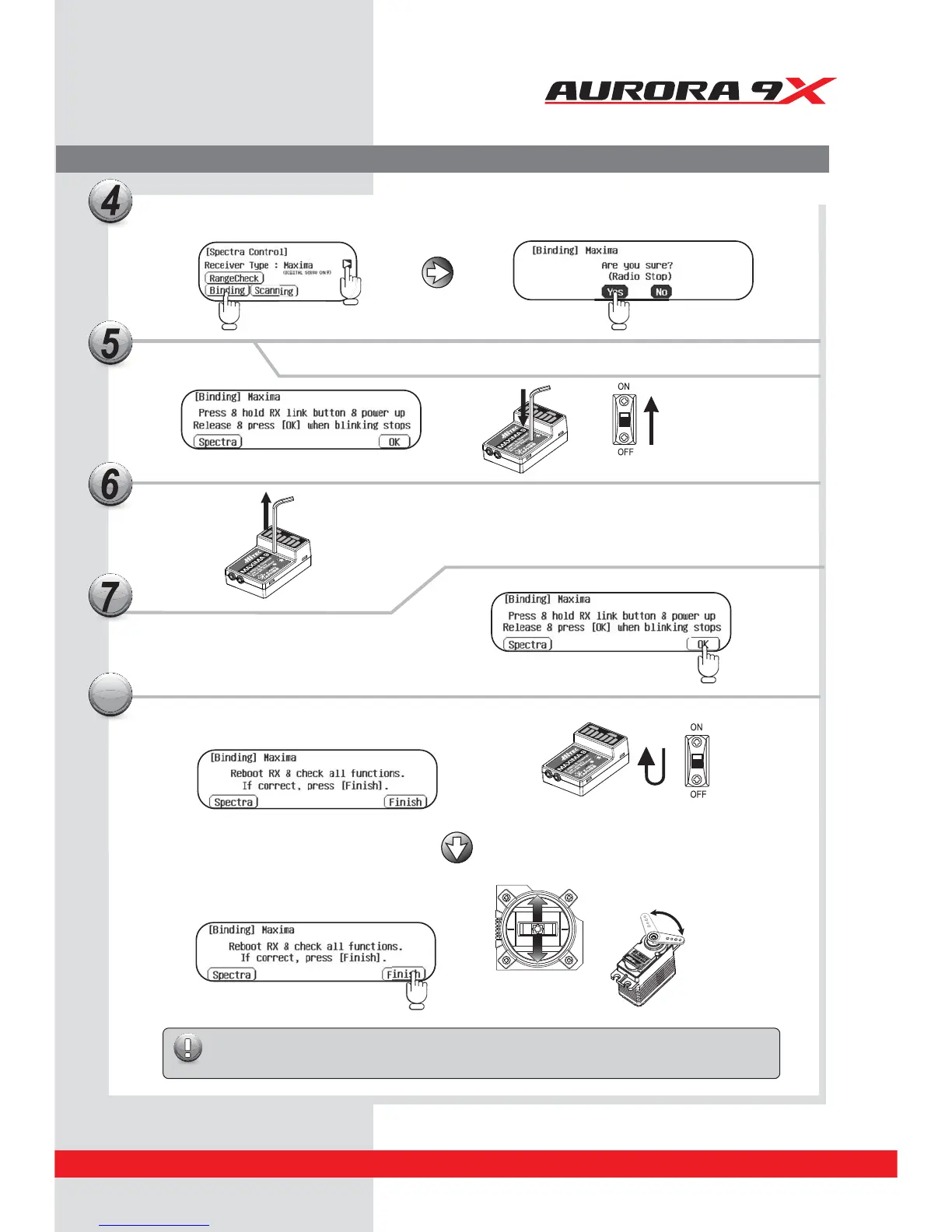 Touch the “arrow” to select the type of receiver you wish to bind to, then touch “Binding” icon and then touch “Yes” for Binding.