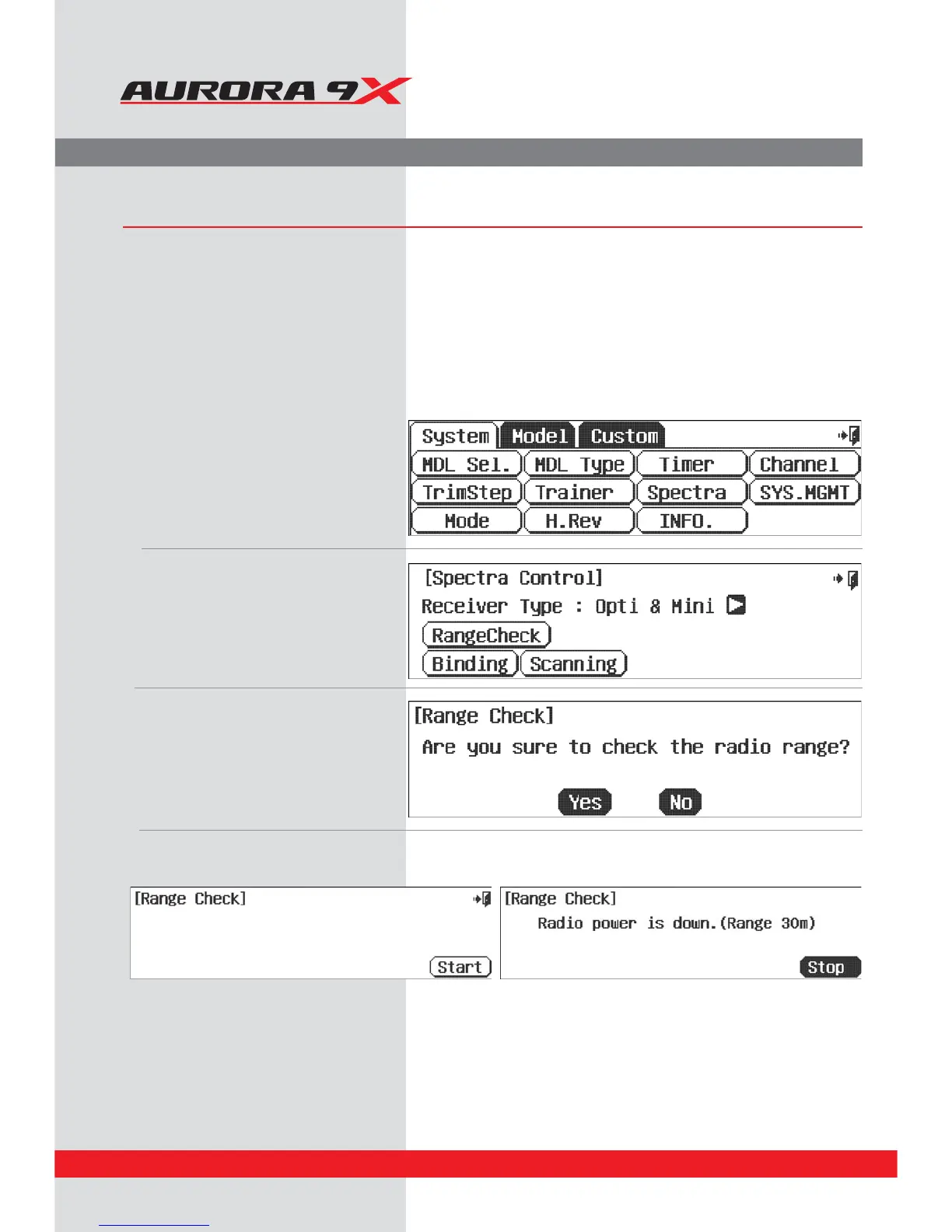 It is critical that before each ight session you perform a range check that conrms the signal between the receiver and transmitter is