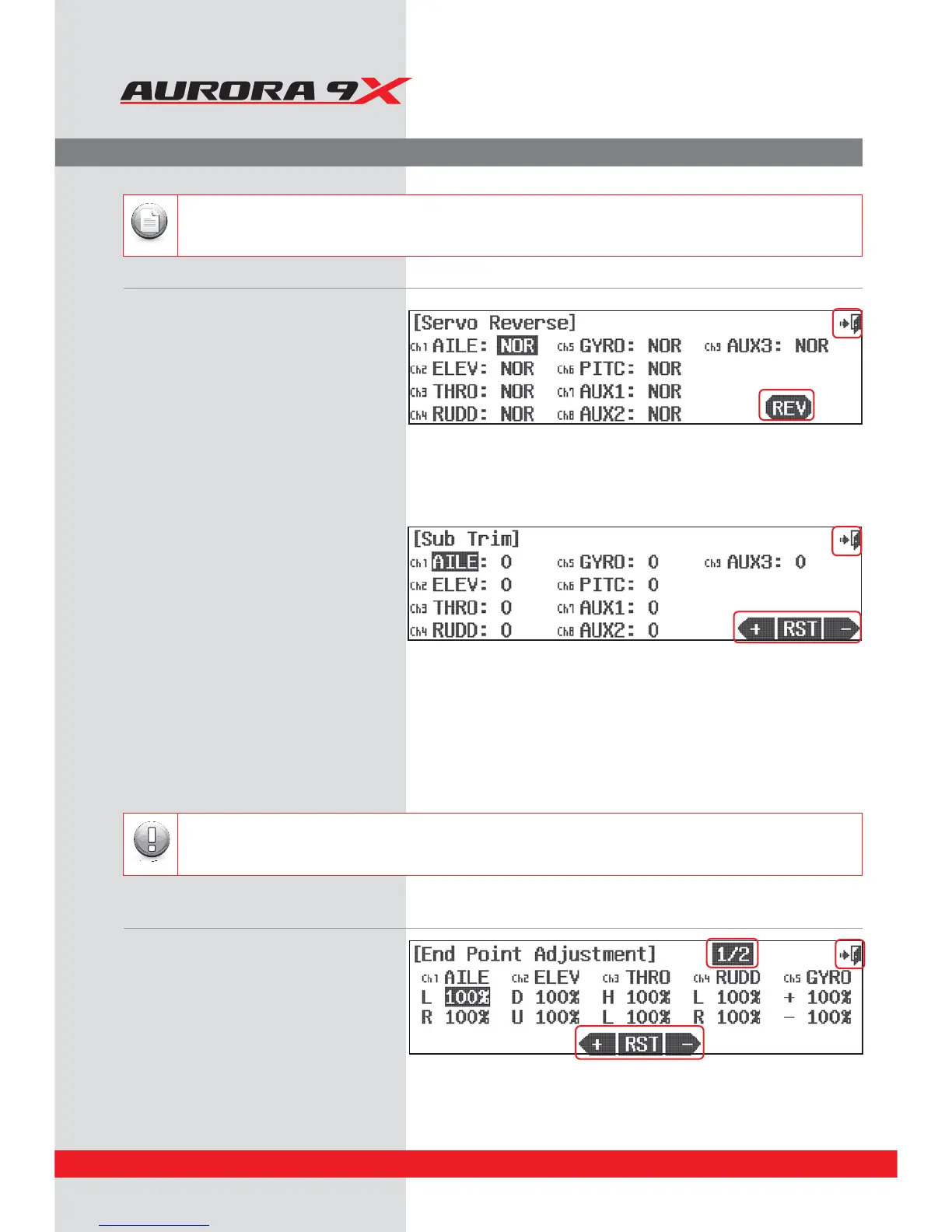 adjusted by moving the control horn or adjusting the linkage.