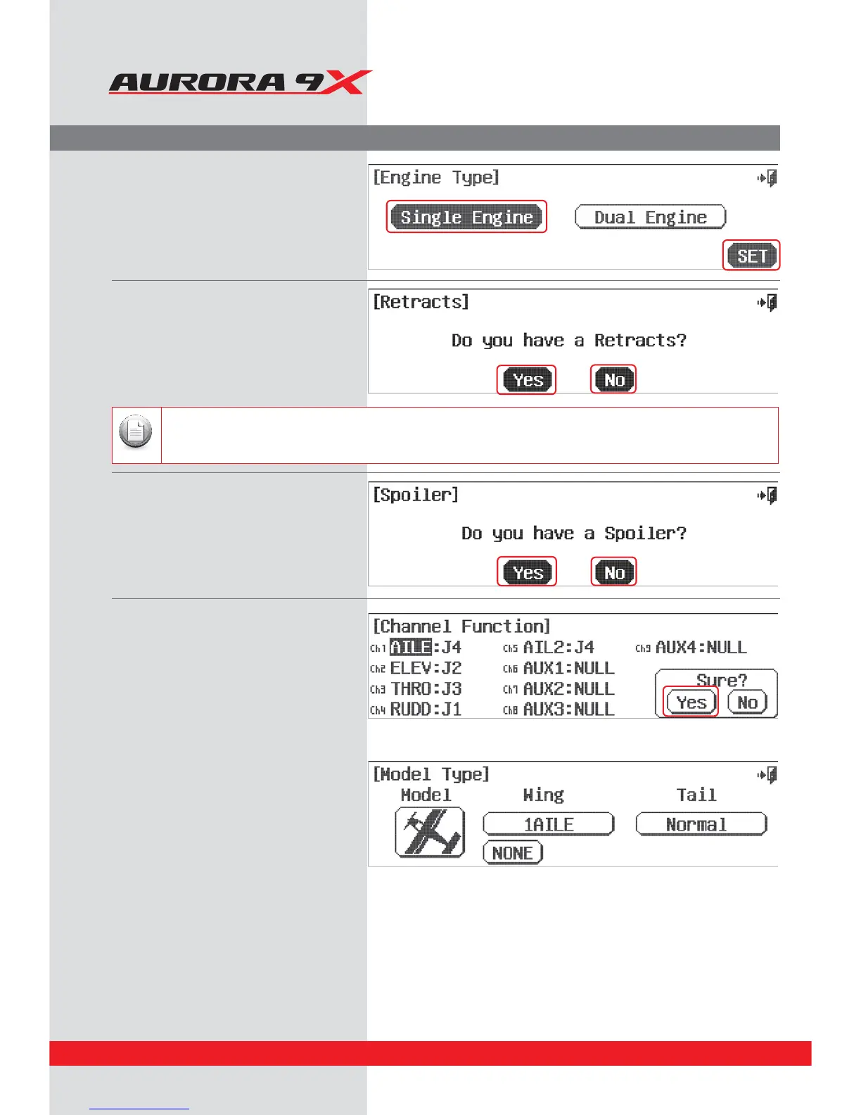 If you select, Yes to the retract question, “Gear” will be associated with a channel shown in the channel function menu.