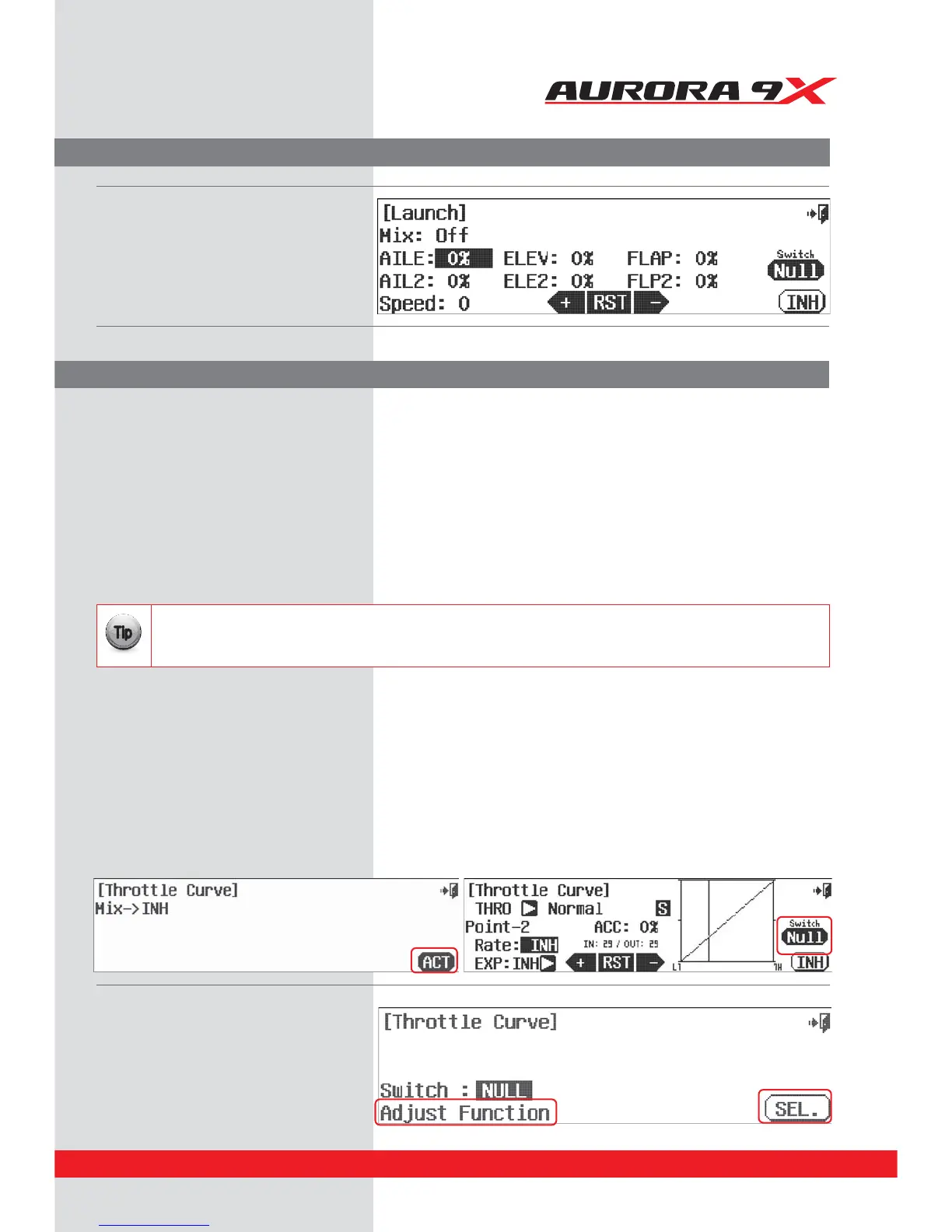 b. Enter the throttle curve switch menu by selecting NULL at the throttle curve menu screen.