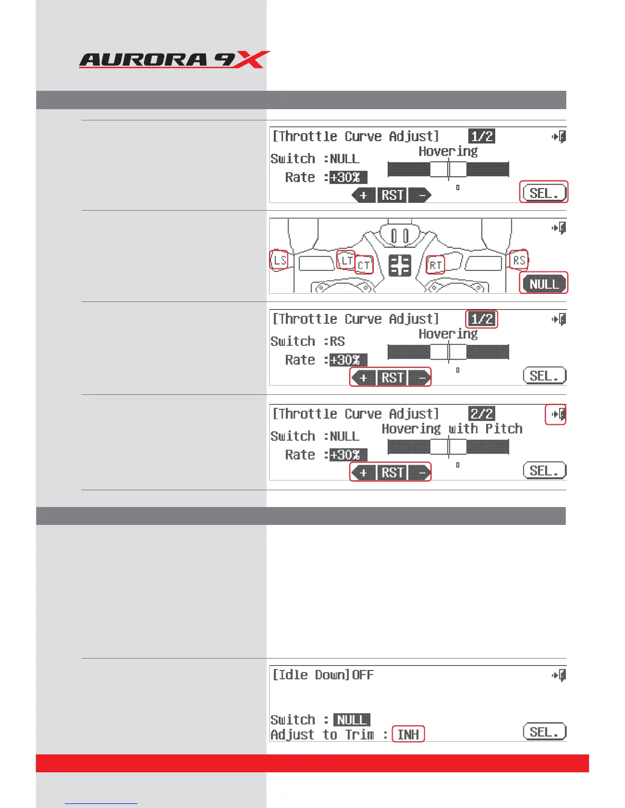 Helicopter throttle and pitch curve adjust functions, hover trim and more