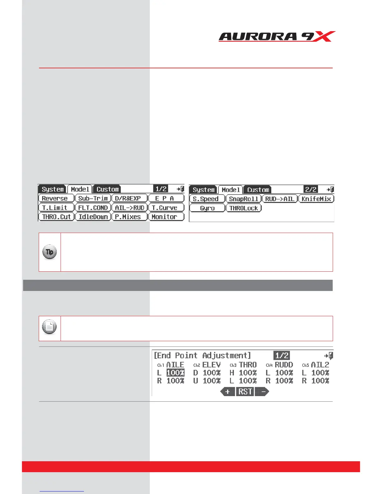 Model Menu and More - Menu Functions Common to all ACRO, GLID and HELI models.