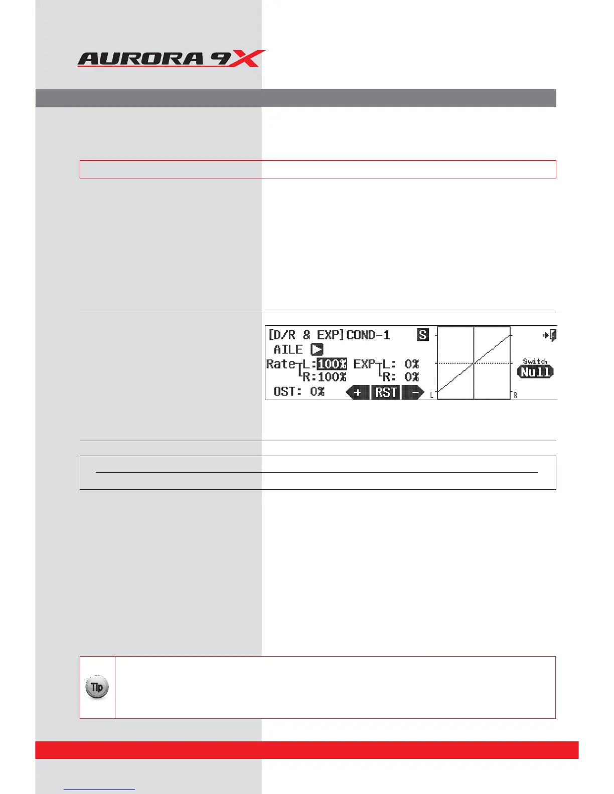 b. Press NULL to apply the dual rate function to a two or three positions switch.