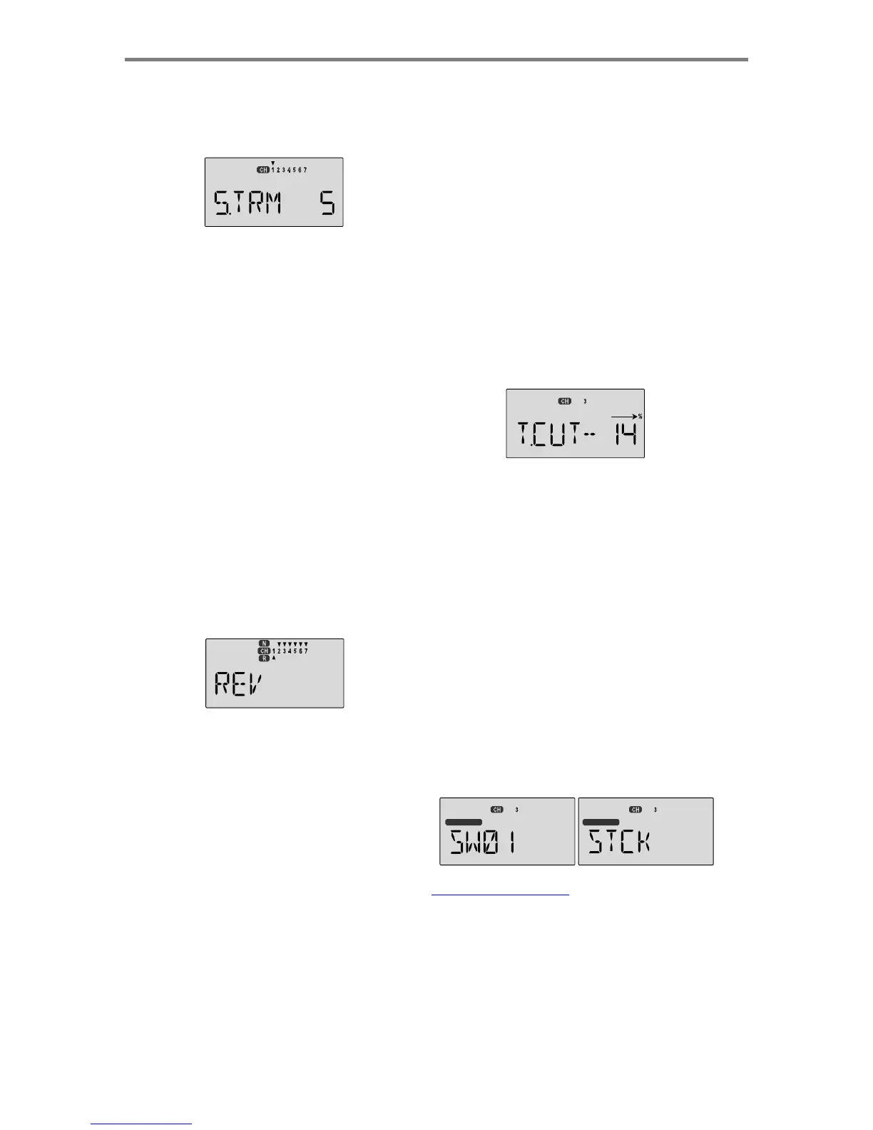 HITEC OPTIC 6 - REV - Servo Reversing; T.CUT - Throttle Cut (Engine Kill) Function
