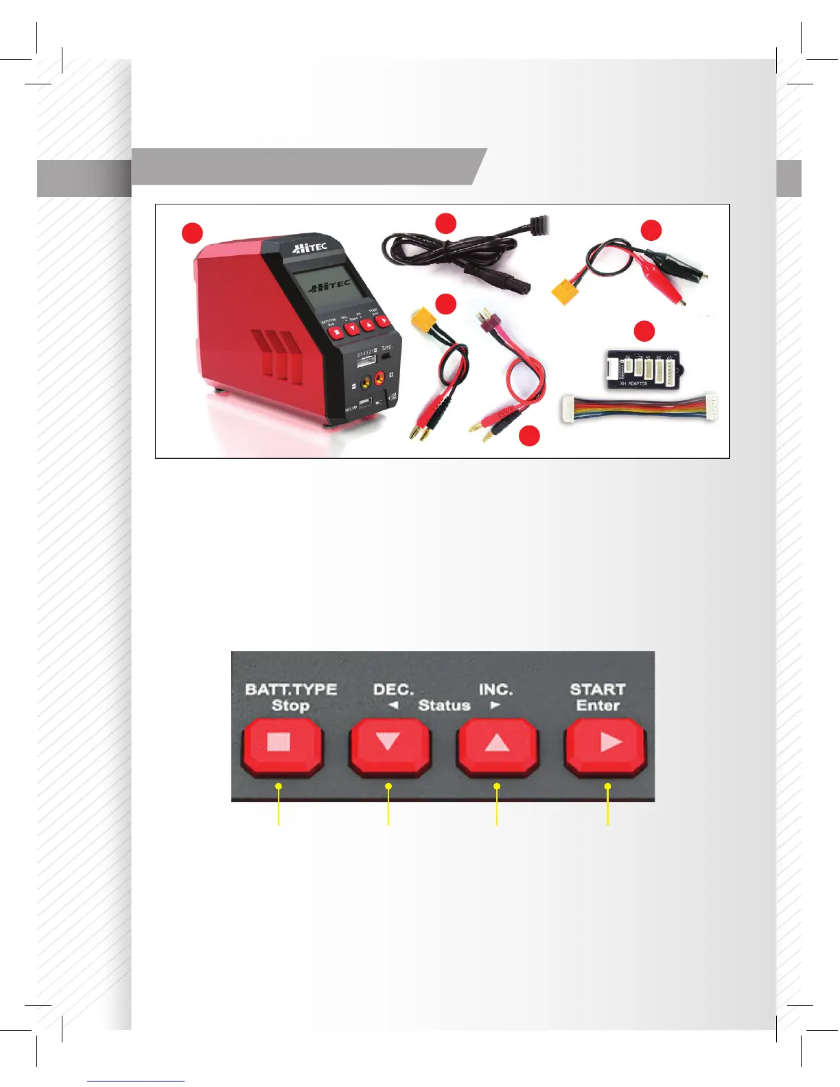 HITEC RDX1 PRO - Charger Layout and Components; RDX1 Pro Charger and Accessories; Input Buttons Functions