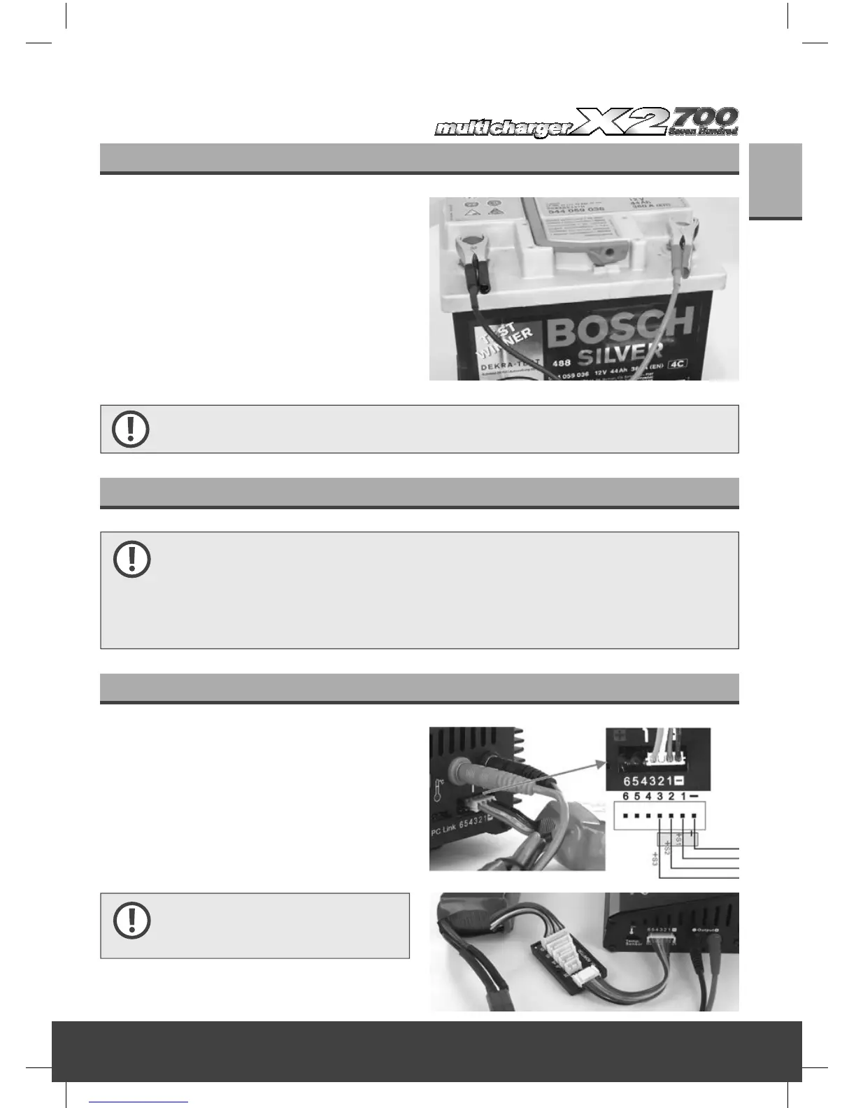 Wichtig! Bevor Sie einen Akku anschließen ist es sehr ratsam, nochmals zu überprüfen, ob alle Ladeparameter