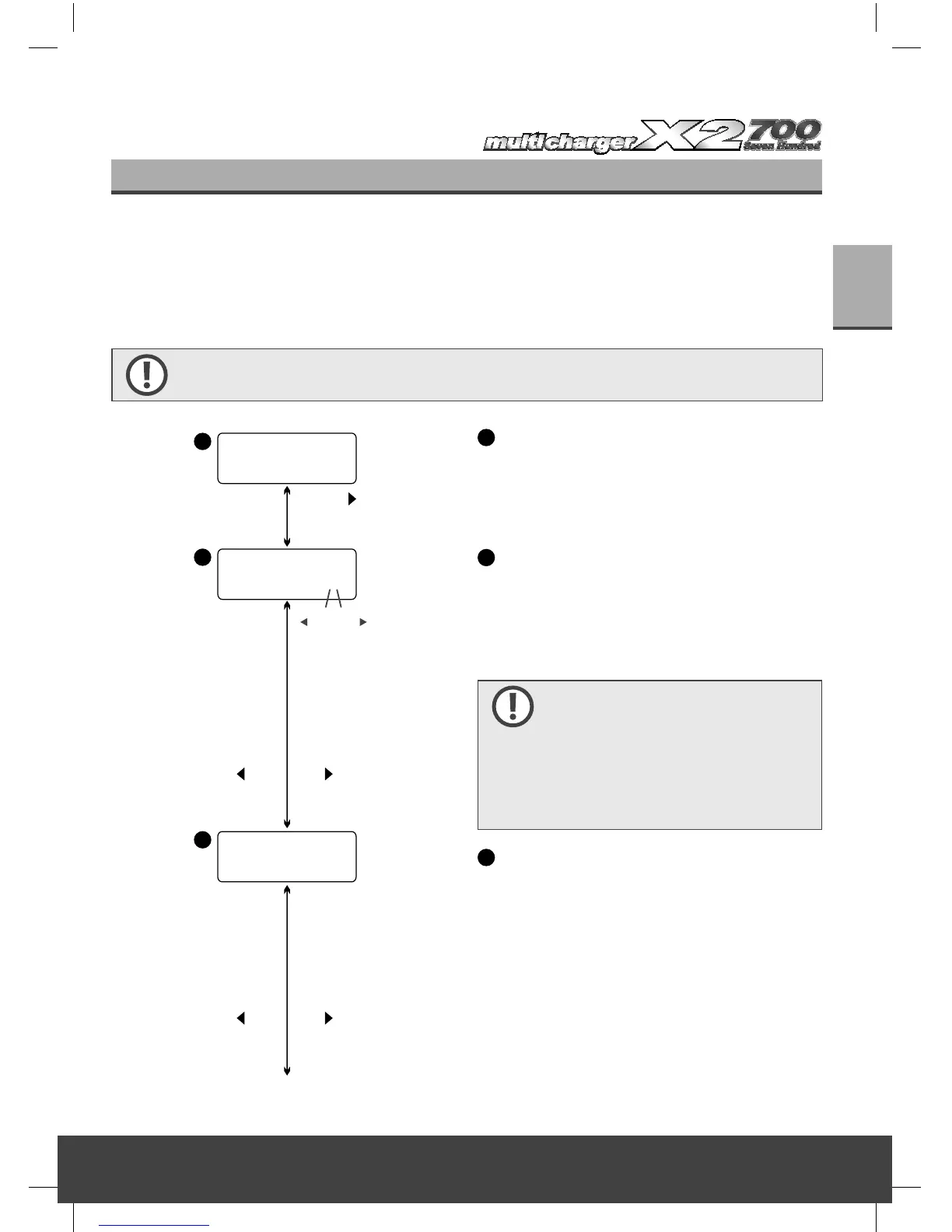Warning! Do not connect a battery to the charger before setting up the default user preferences.