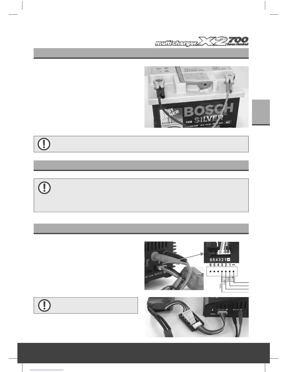 Important ! Avant de connecter une batterie, vérifi ez une dernière fois que tous les paramètres de charge et