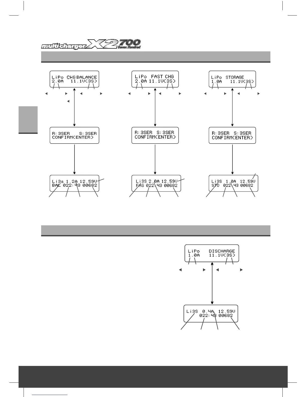 Ecrans des 3 programmes de charge (Balance Mode, Fast Mode et Storage Mode).