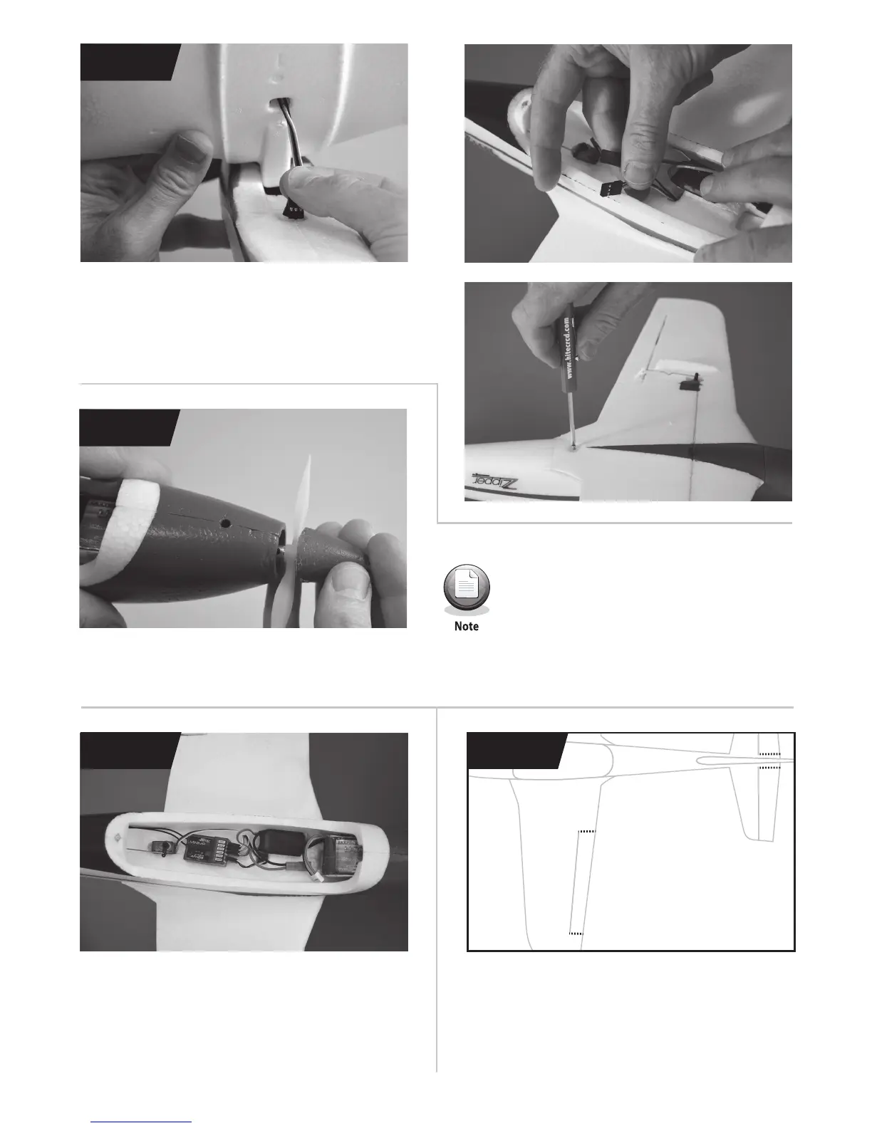 into the fuselage and plug the servo and ESC