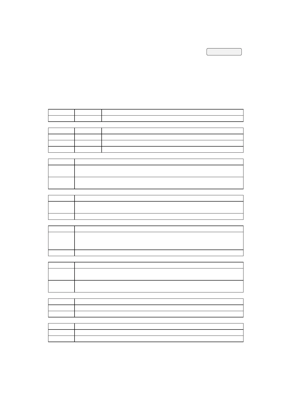 Configuration Table for PLC communications.