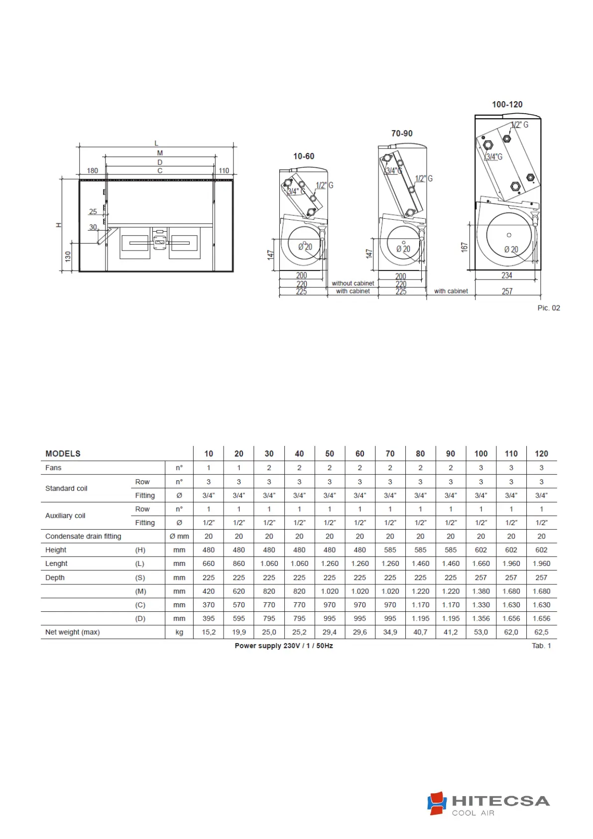 Hitecsa FCW Series - General Dimensions; General Technical Data