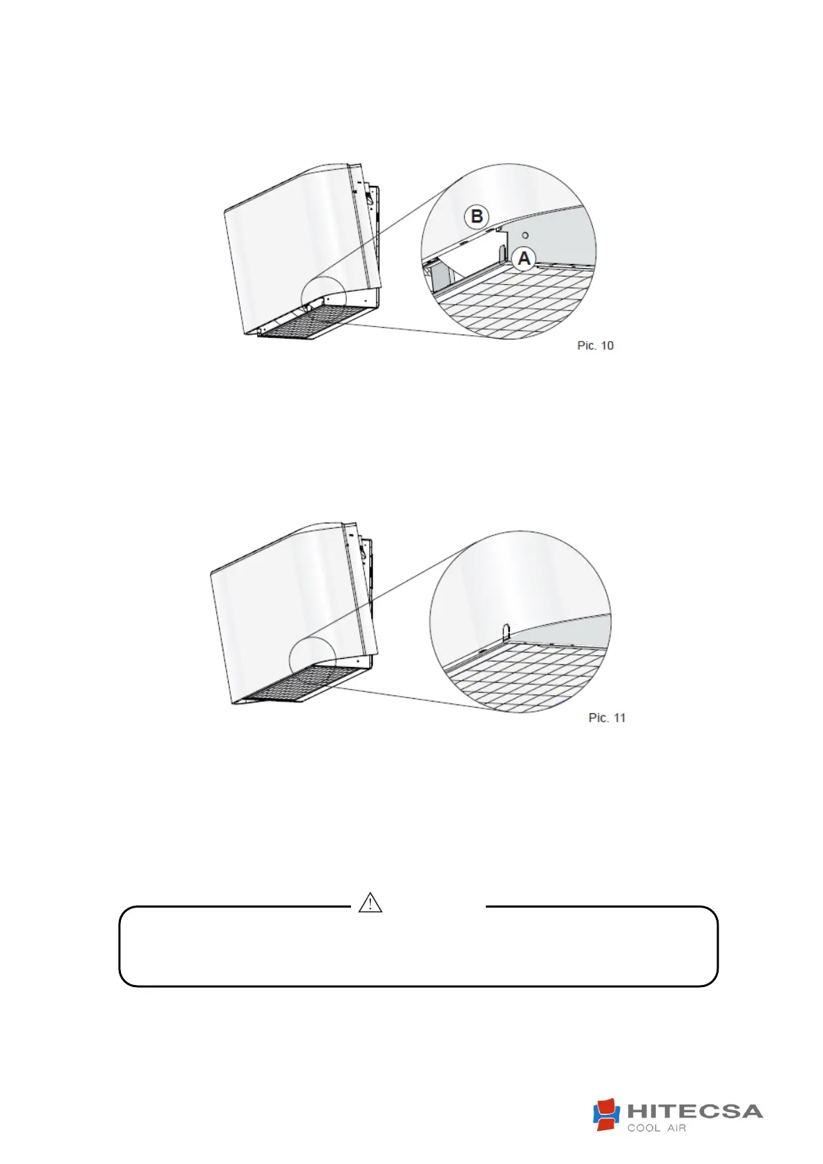 Insert the lugs A into the relative slots B (Pic.11). Pivot the cabinet on its base until it is aligned with the