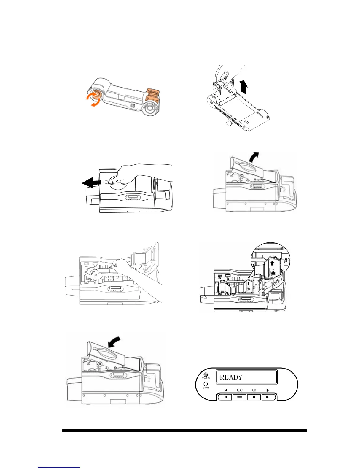 5. Close the ribbon door. Make sure the STATUS LED displays green light and