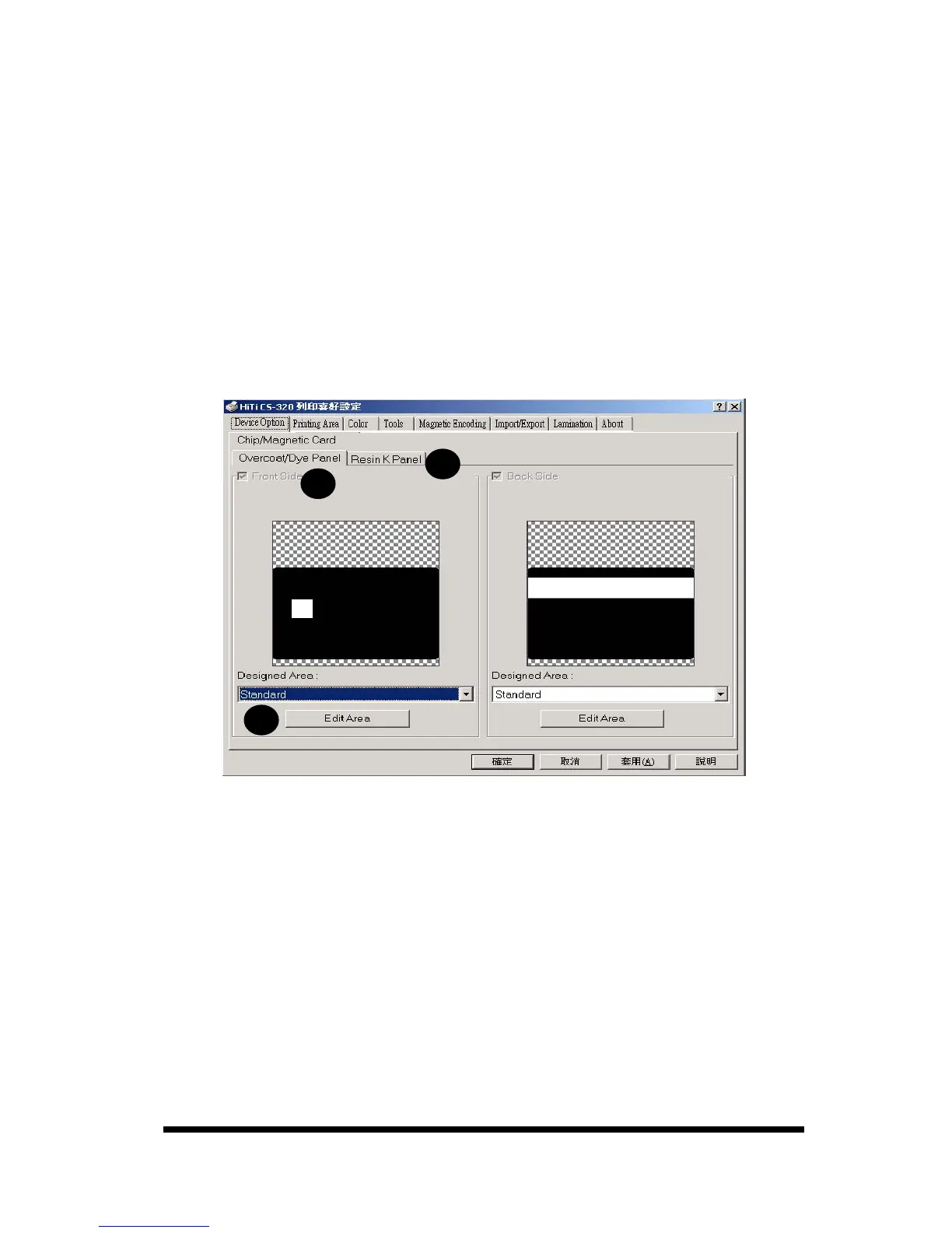 Area]ÆOvercoat/Dye Panel, the chip area in the front side and magnetic stripe