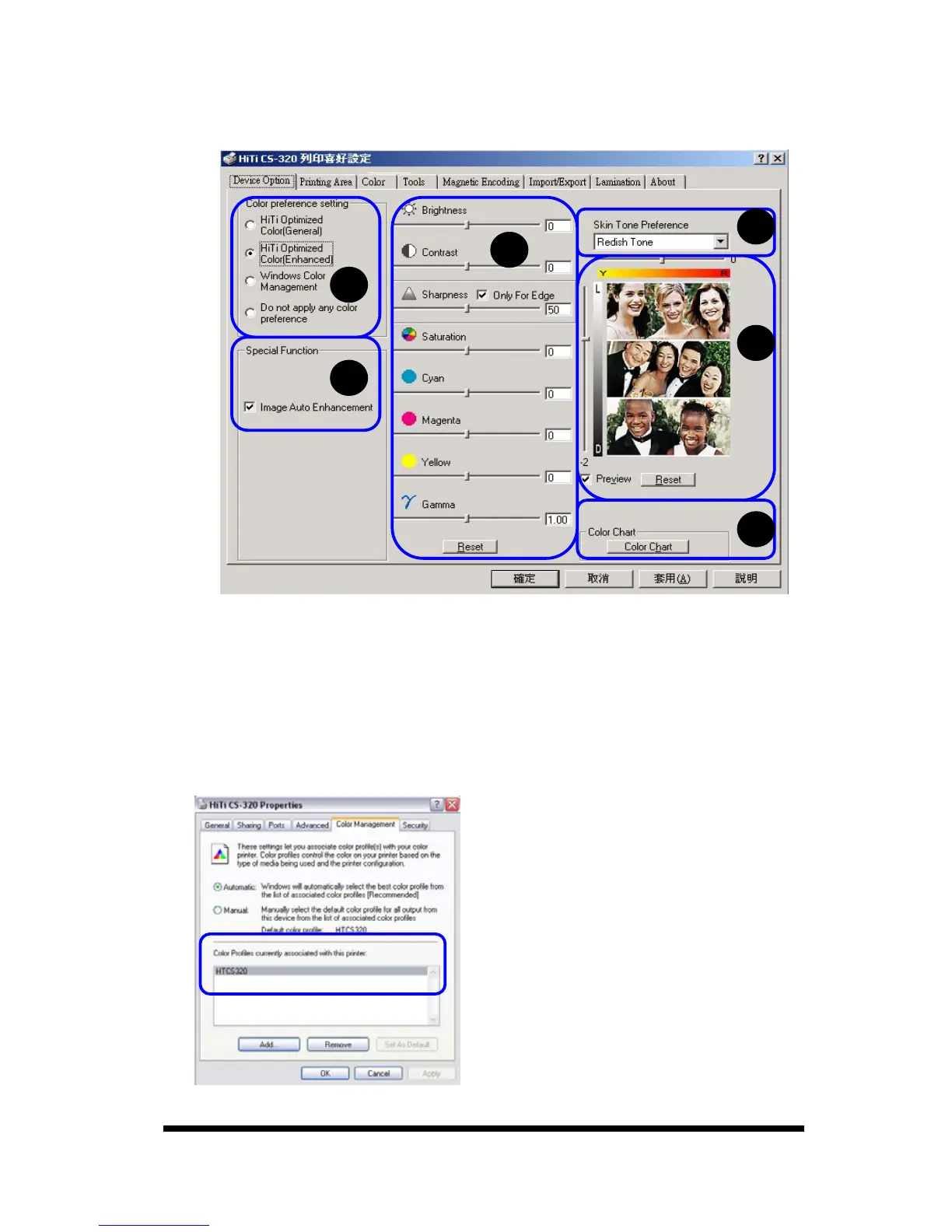 [Control Panel]→Printers and Faxes→HiTi CS-310/320→Properties→Color
