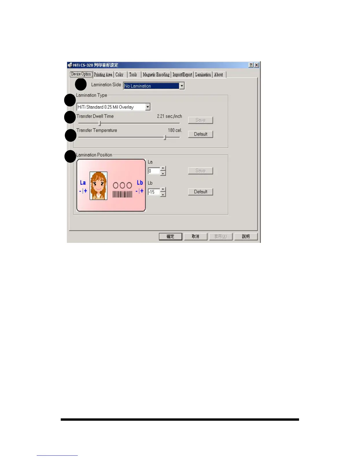 D: Transfer Temperature: The temperature of the transfer to lamination.