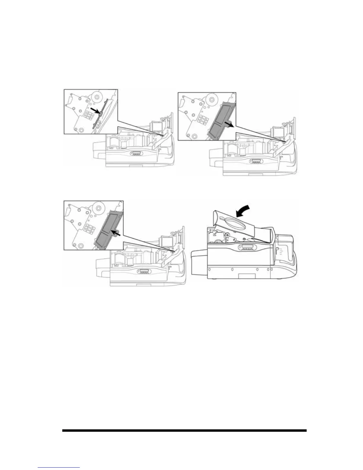 4. Insert the air filter into the ribbon door and close the ribbon door. The cleaning