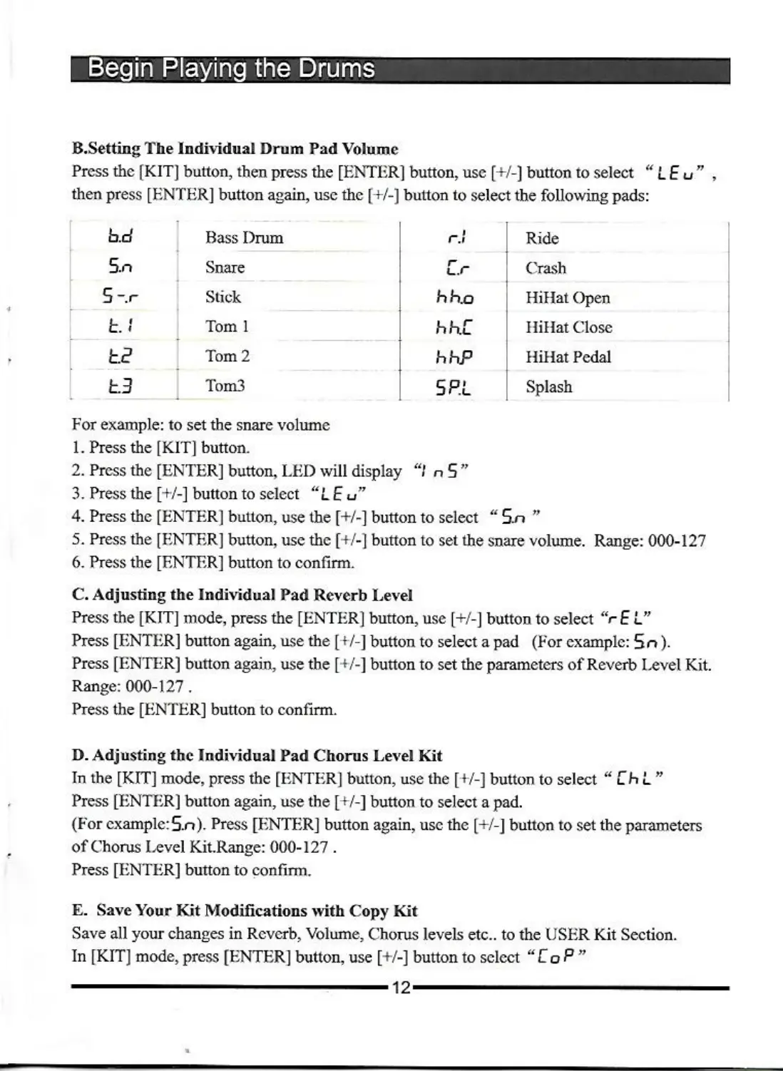 Hitman HD-3 - Setting Individual Drum Pad Volume; Save Kit Modifications (Copy Kit)