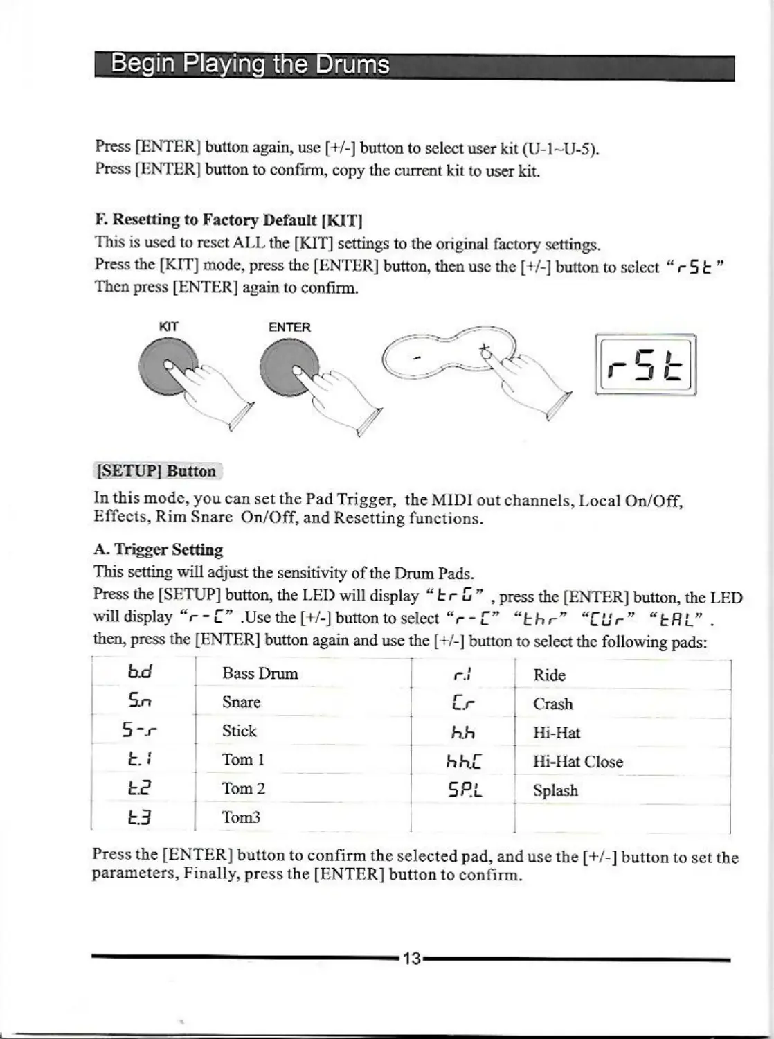 Hitman HD-3 - Resetting KIT to Factory Default; SETUP Button Function Overview; Trigger Setting Adjustment