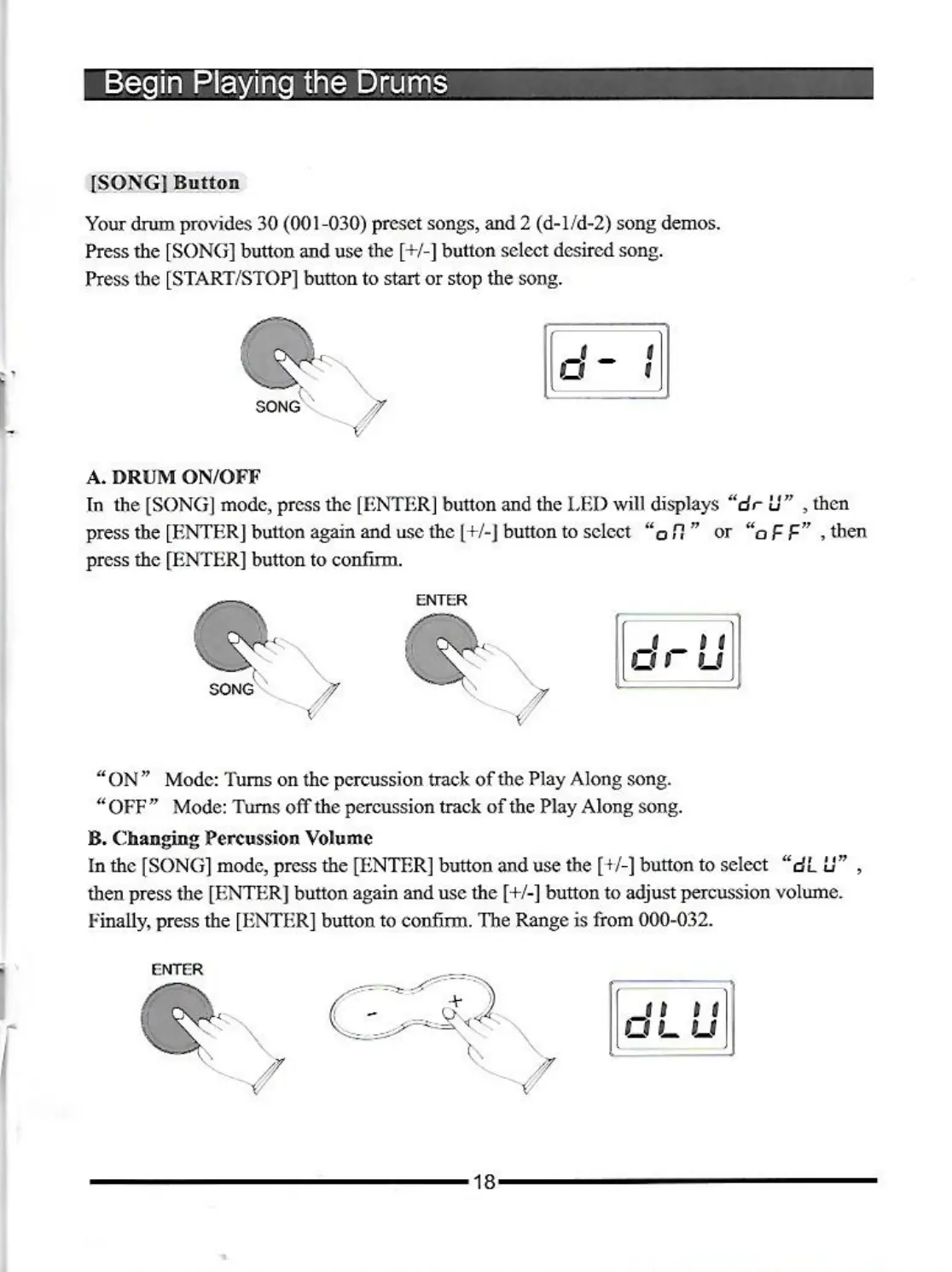 Hitman HD-3 - SONG Button; Drum On;Off; Changing Percussion Volume