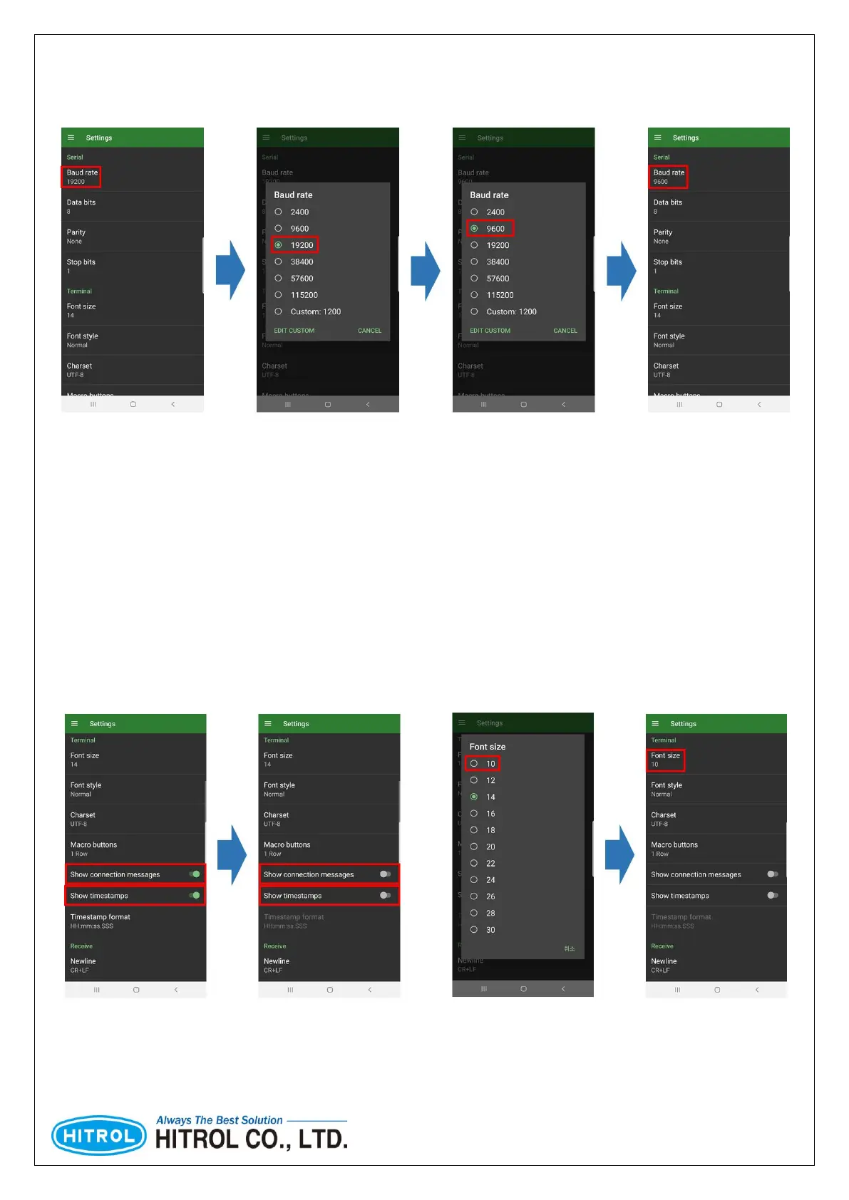 □ The size of the Terminal Font is the size set in the Smartphone.