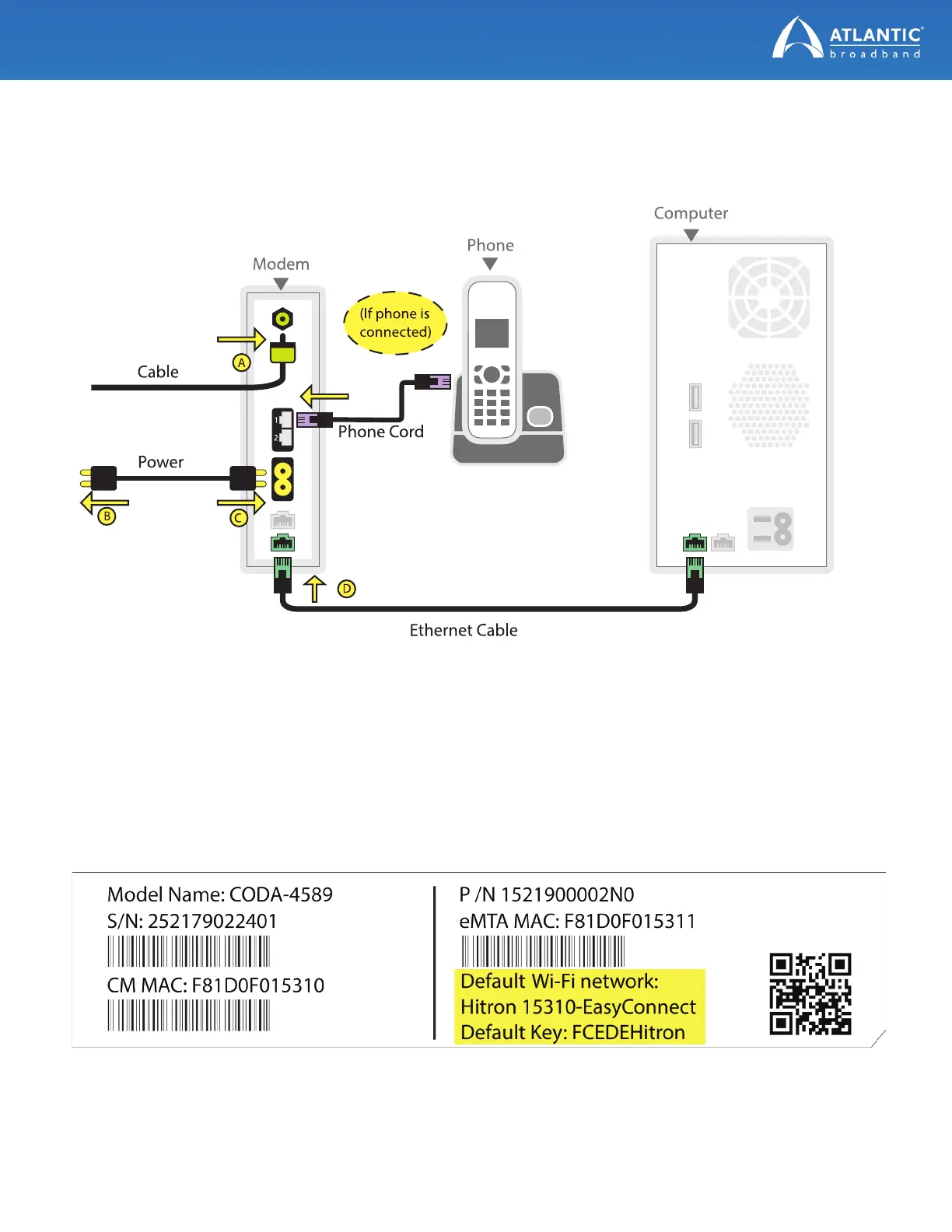 To activate your new modem, you’ll need to connect a computer to the new modem with the Ethernet cord