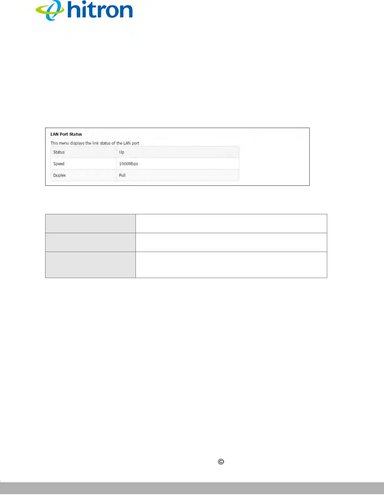 Table 10: The Status: LAN Port Status Screen