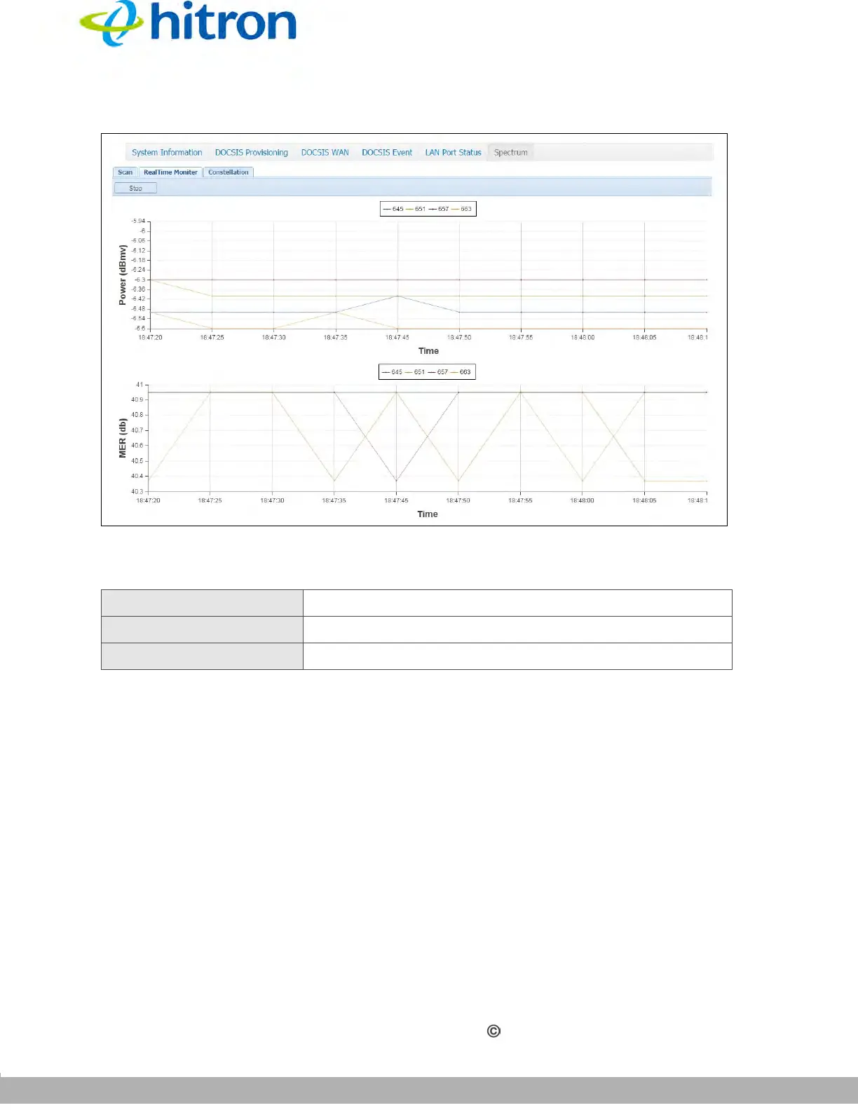 Power (dBmv) This displays the power level of the spectrum.