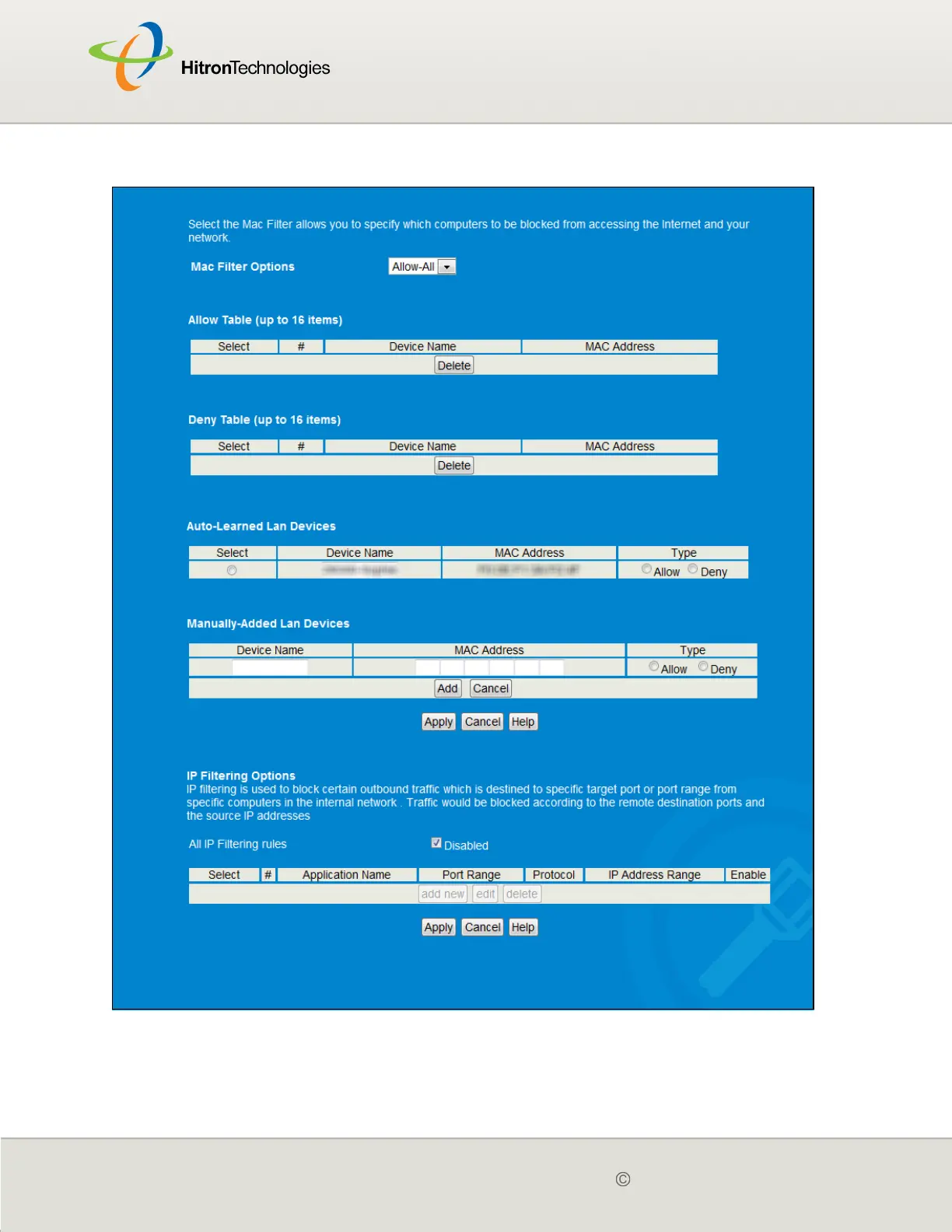 Hitron CGN - Figure 18: the Firewall > Filter Setting Screen