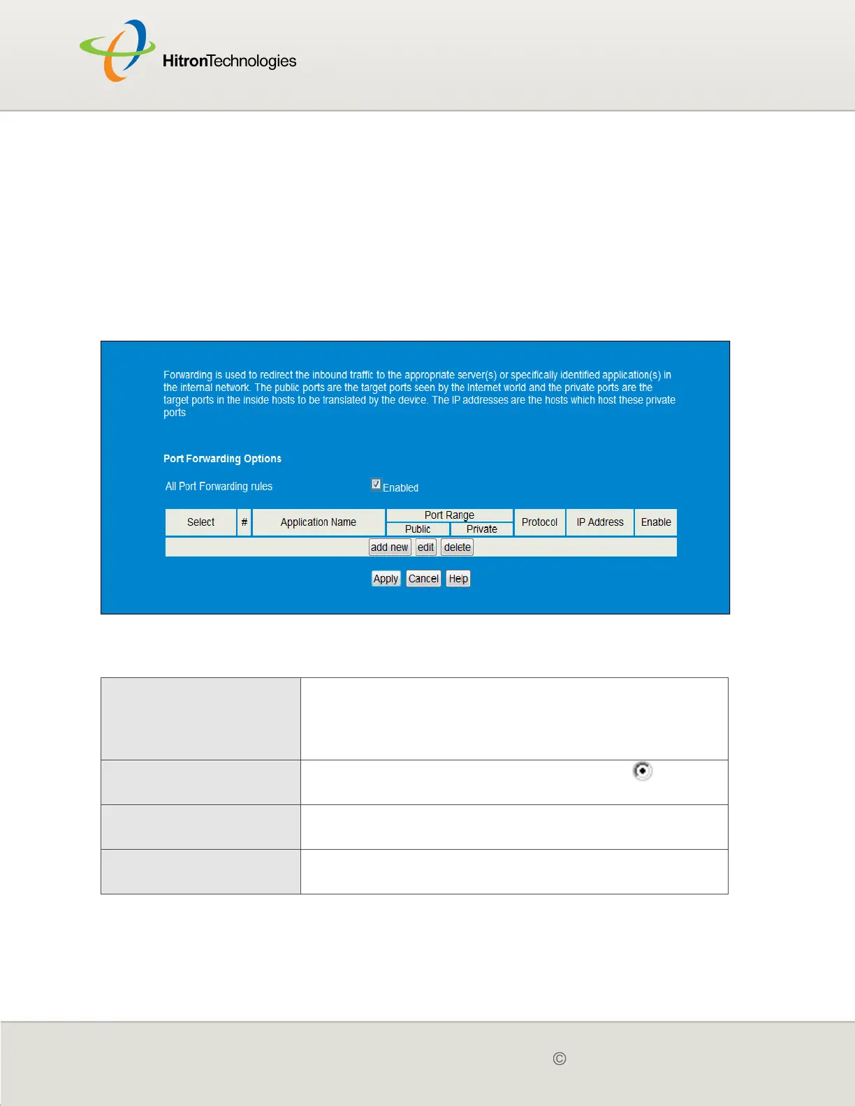 All Port Forwarding Rules Use this field to turn port forwarding on or off.