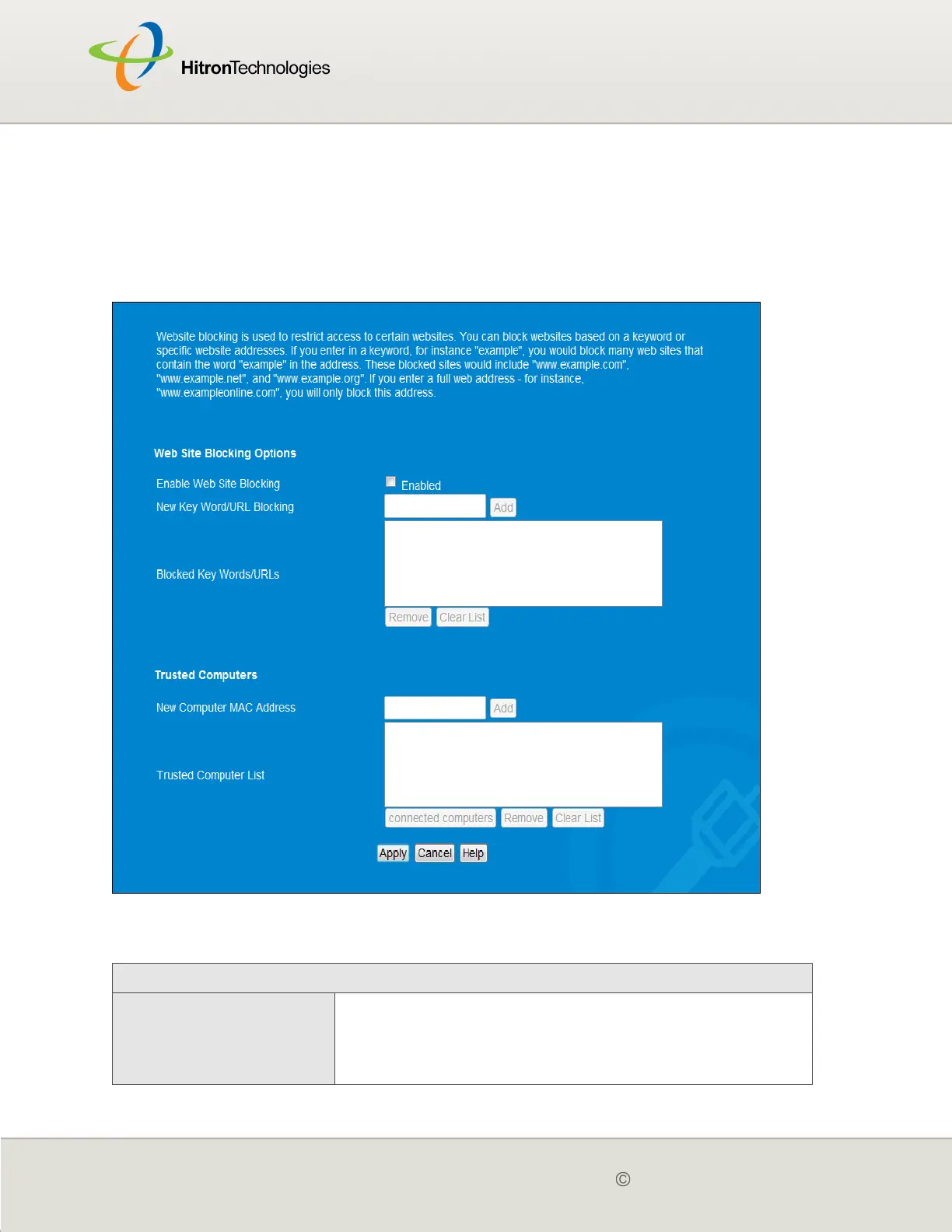 Figure 25: The Parental Control > Web Site Blocking Screen