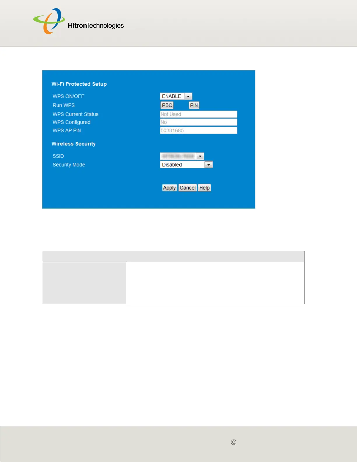 WPS ON/OFF Use this field to turn Wifi Protected Setup (WPS) on or
